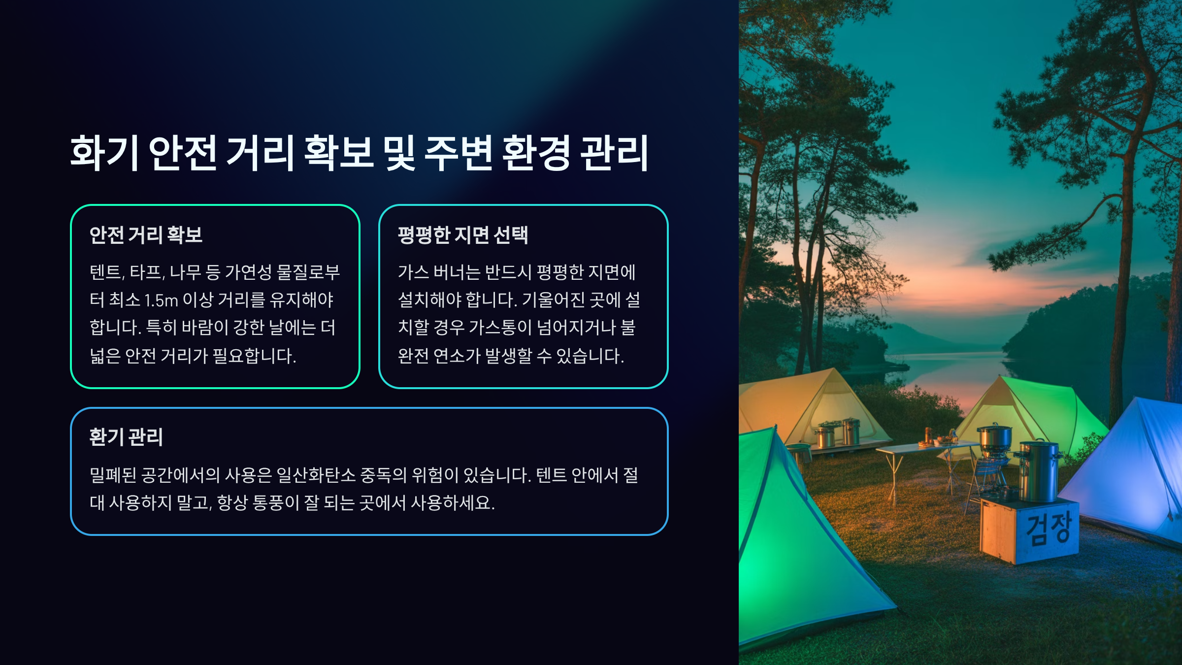 2025.07.15 - [분류 전체보기] - 화재 걱정 끝! 캠핑 가스 버너 완벽 안전 사용법 A to Z