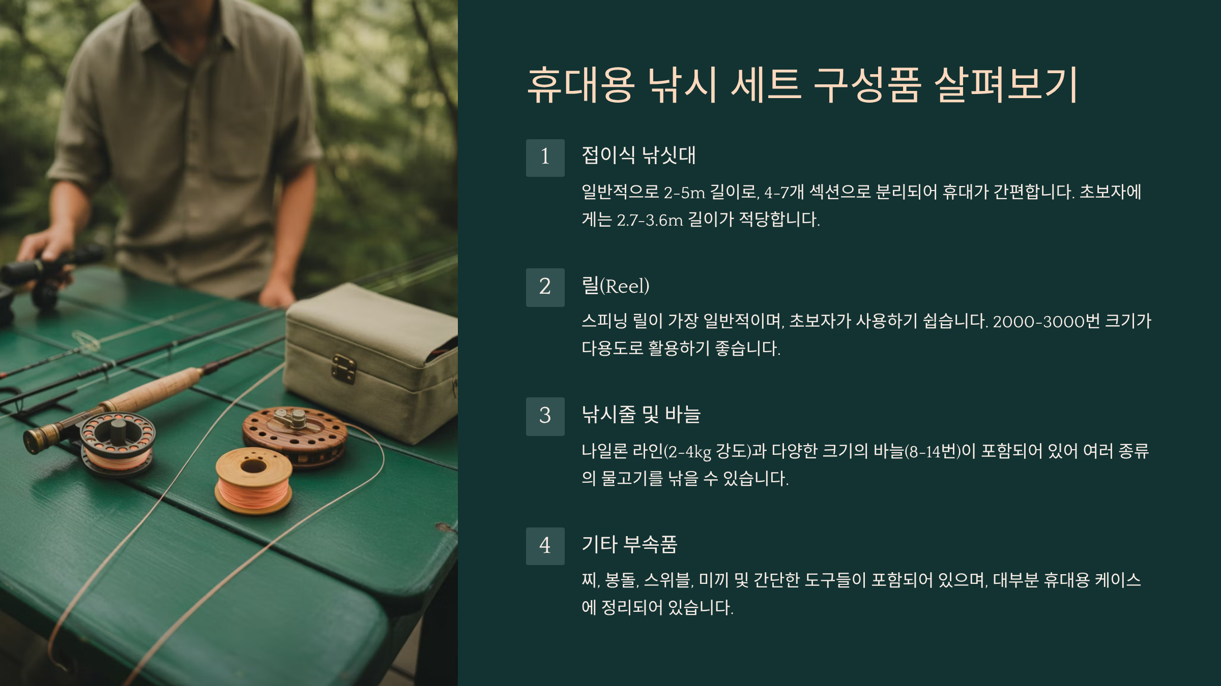휴대용 낚시 세트 구성품 살펴보기