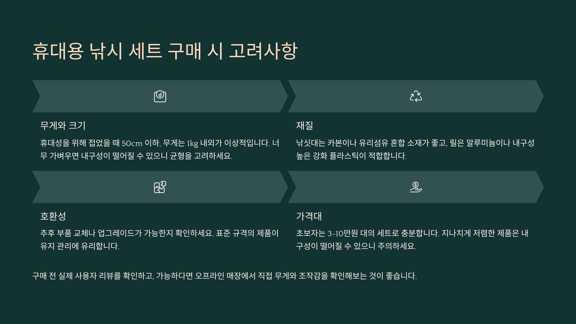 휴대용 낚시 세트 구매 시 고려사항