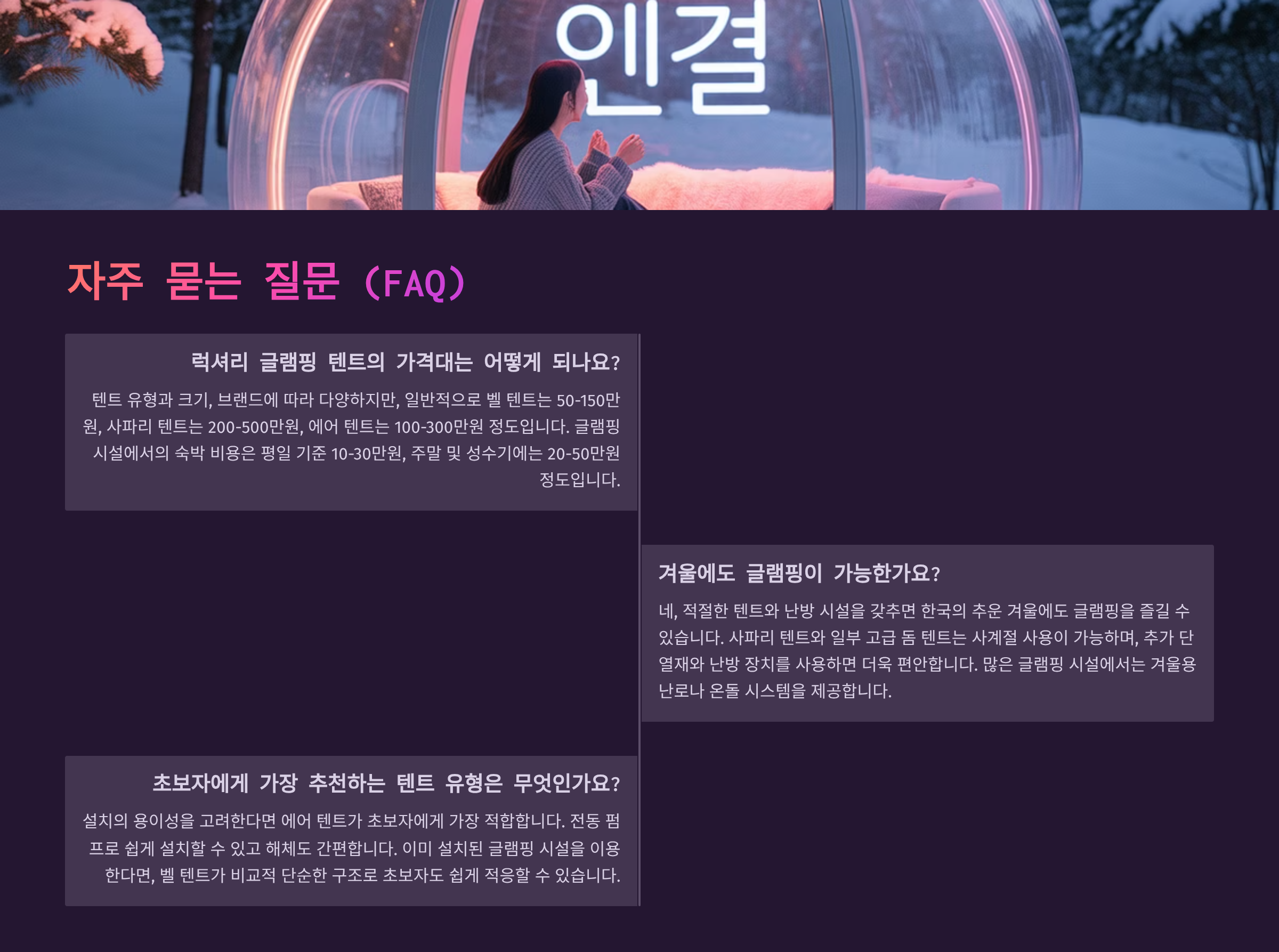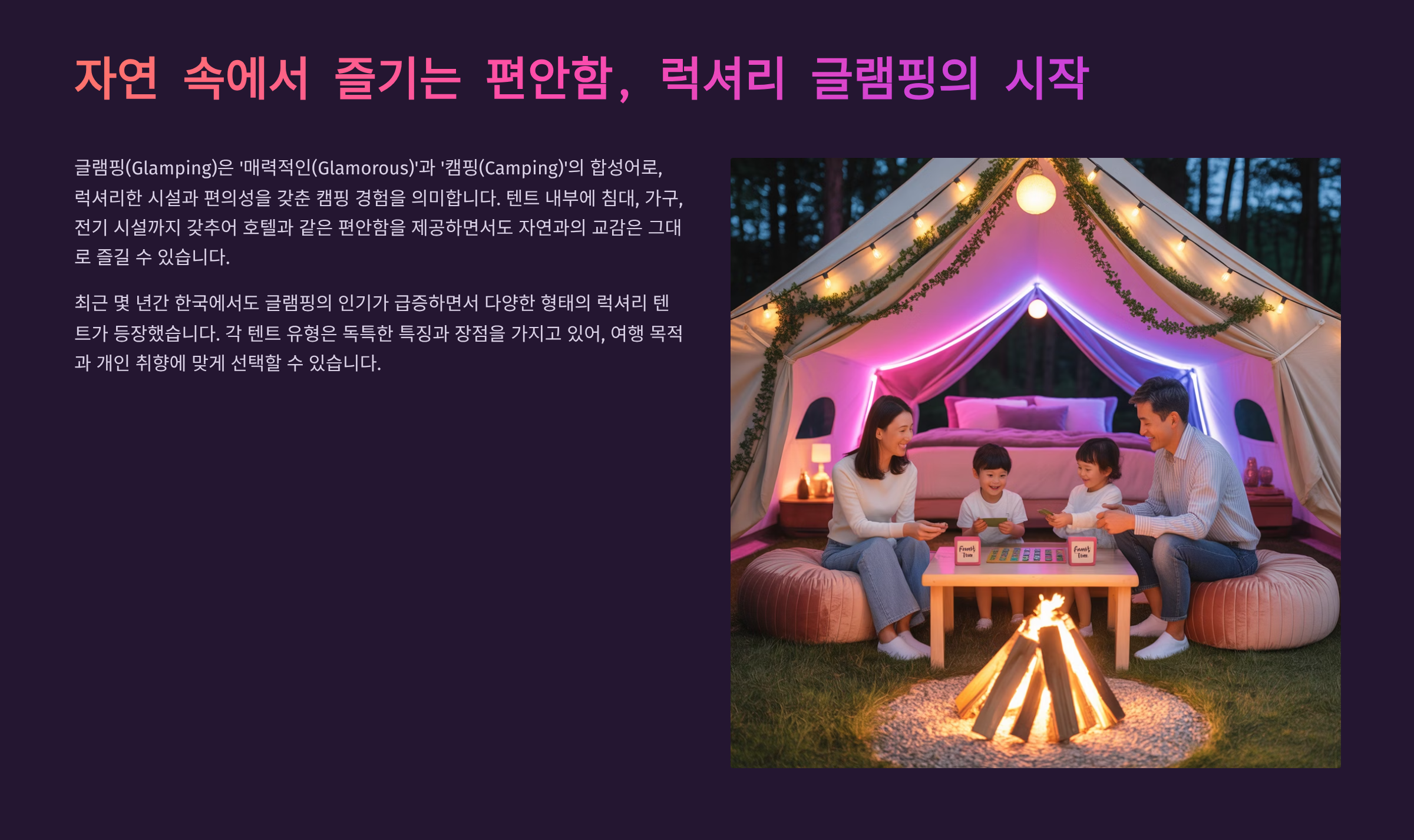 2025.07.20 - [분류 전체보기] - 럭셔리 캠핑을 경험할 수 있는 프리미엄 글램핑장