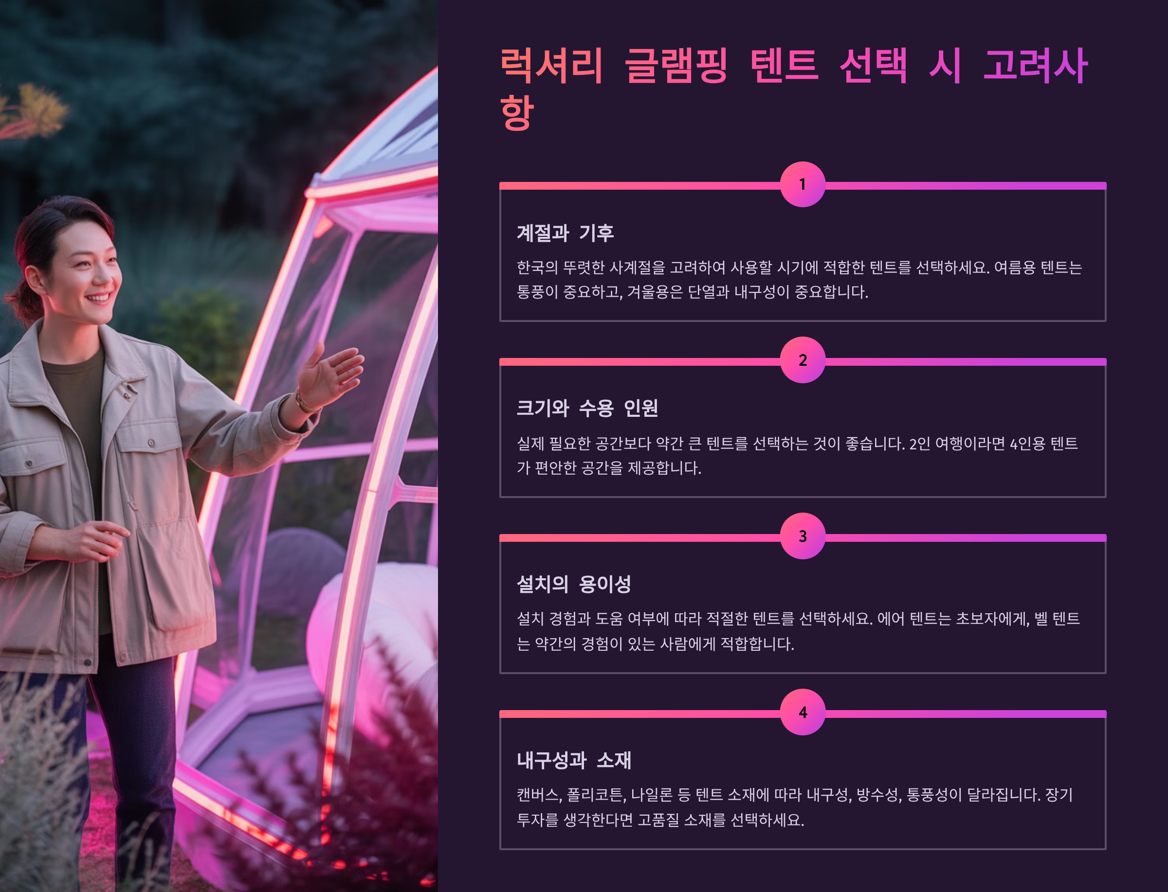 럭셔리 글램핑 텐트 선택 시 고려사항