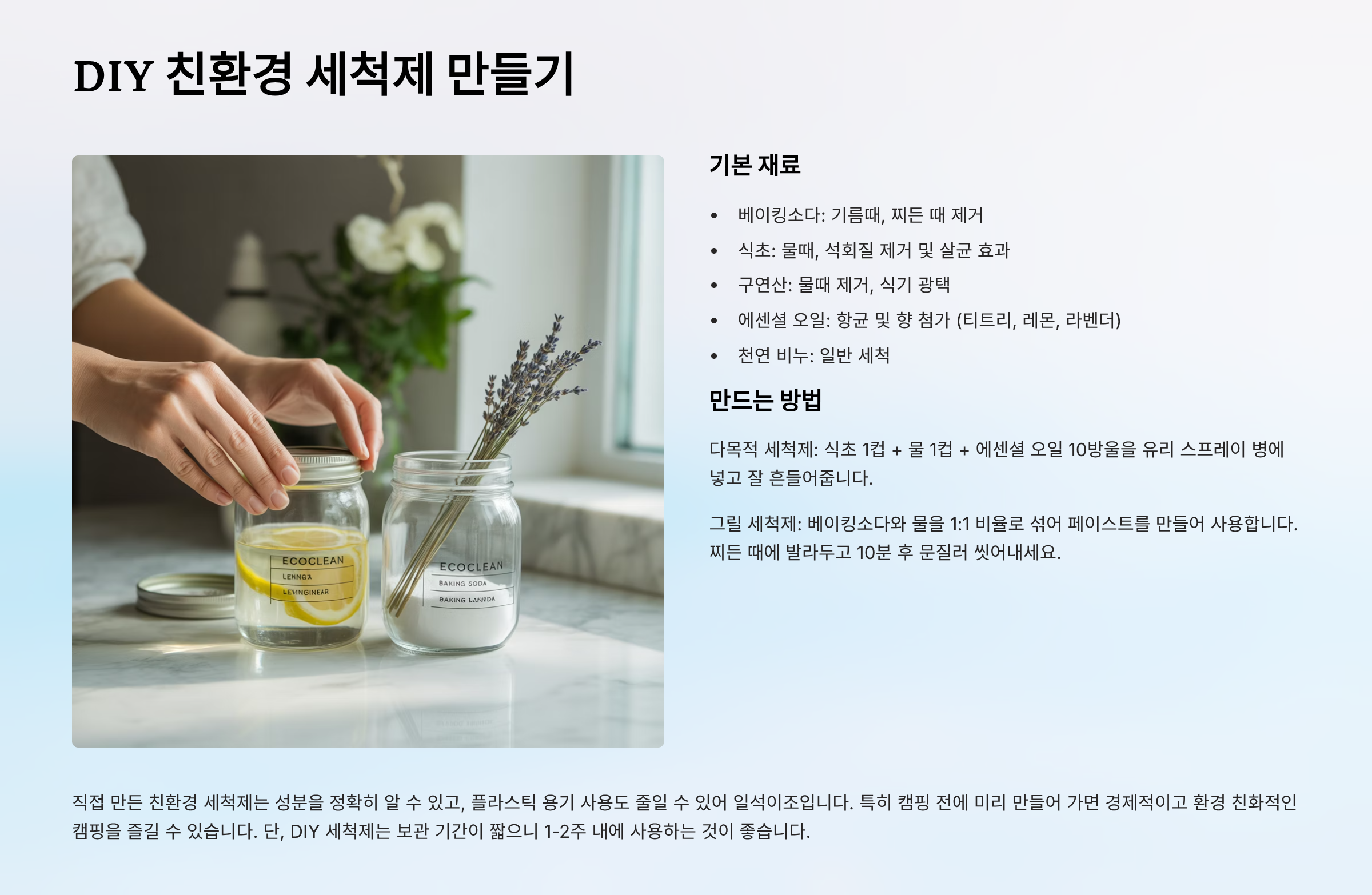 캠핑용 친환경 세척제 추천: 자연을 지키는 올바른 선택 가이드