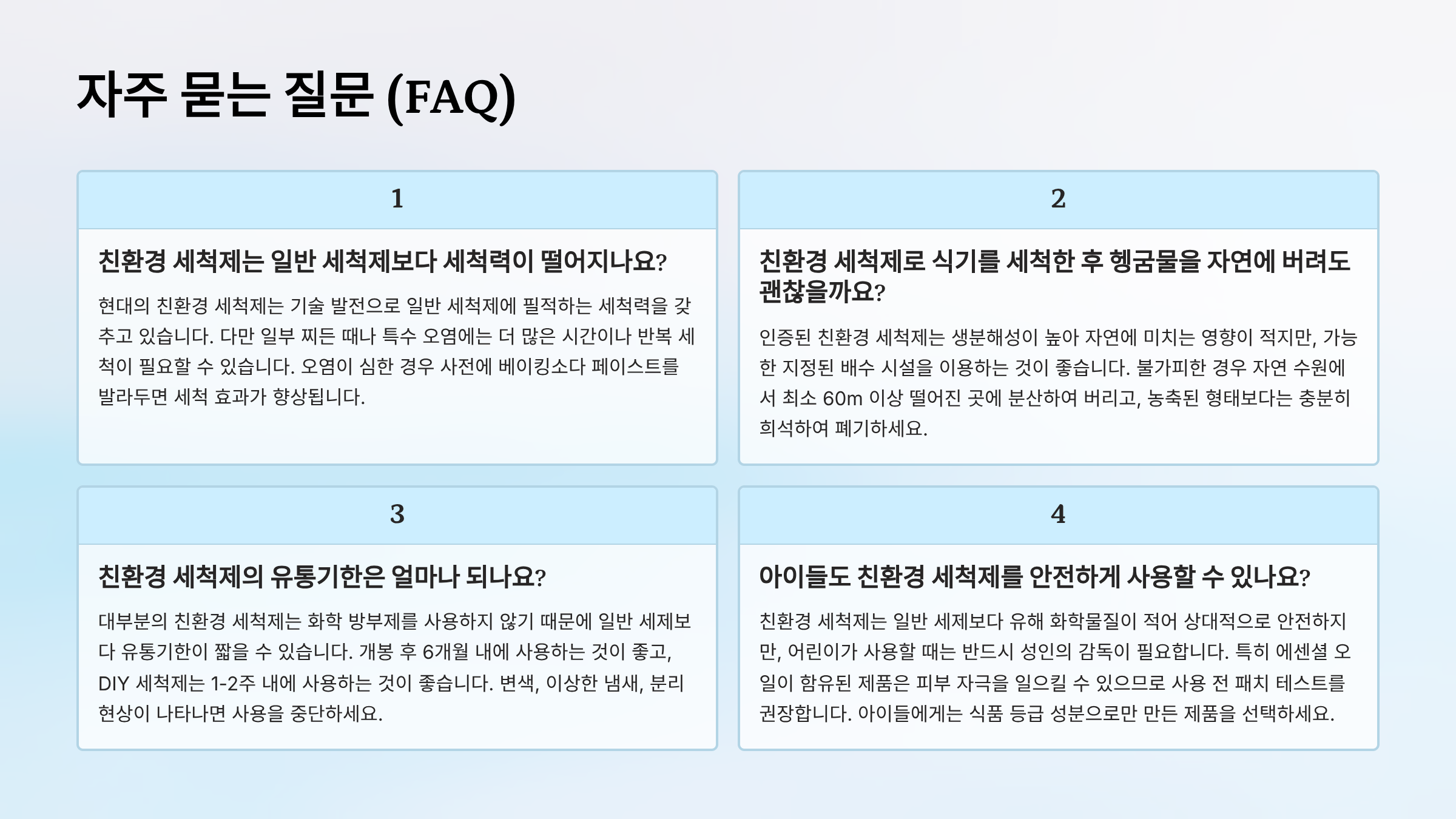 | 구분 | 일반 세척제 | 친환경 세척제 |