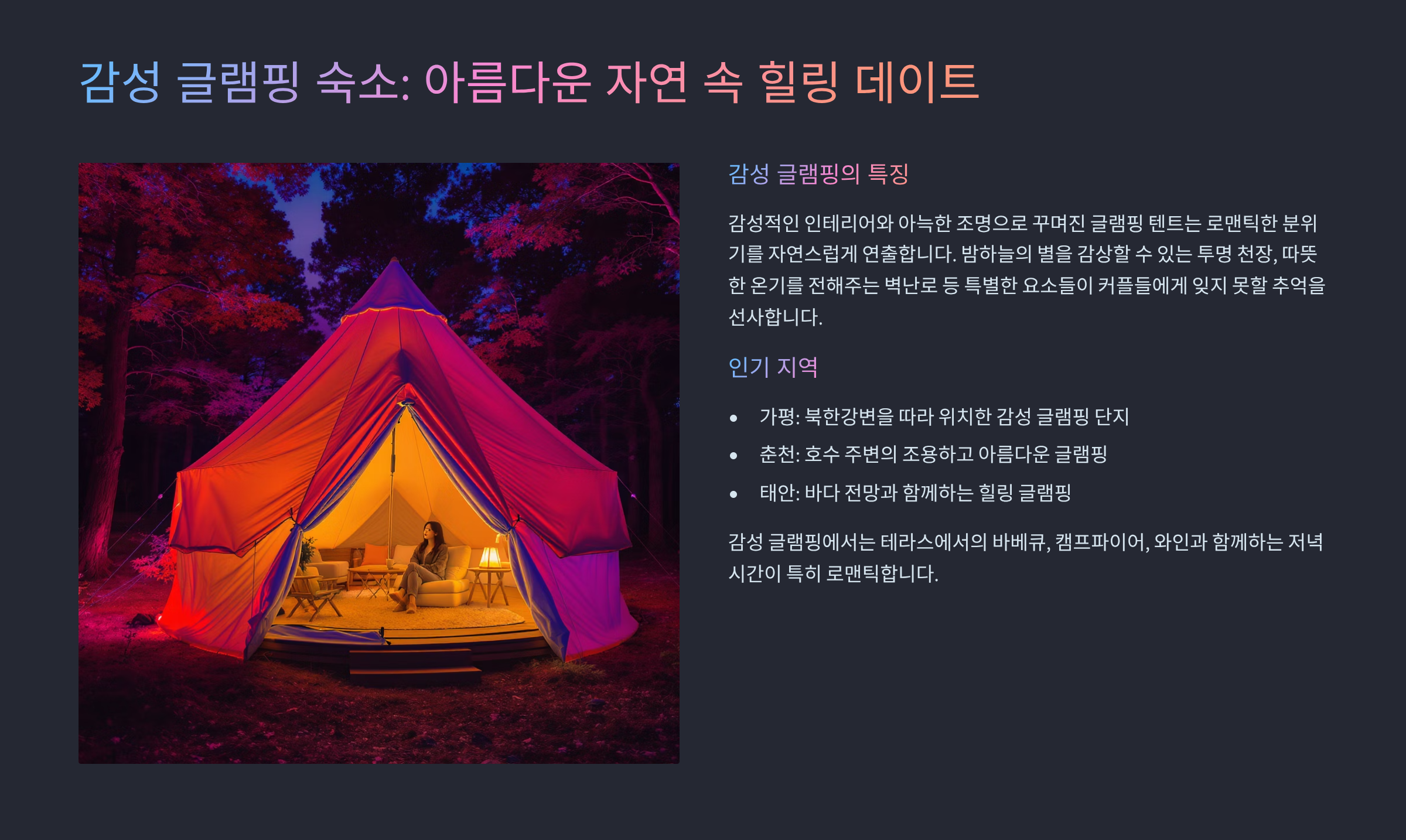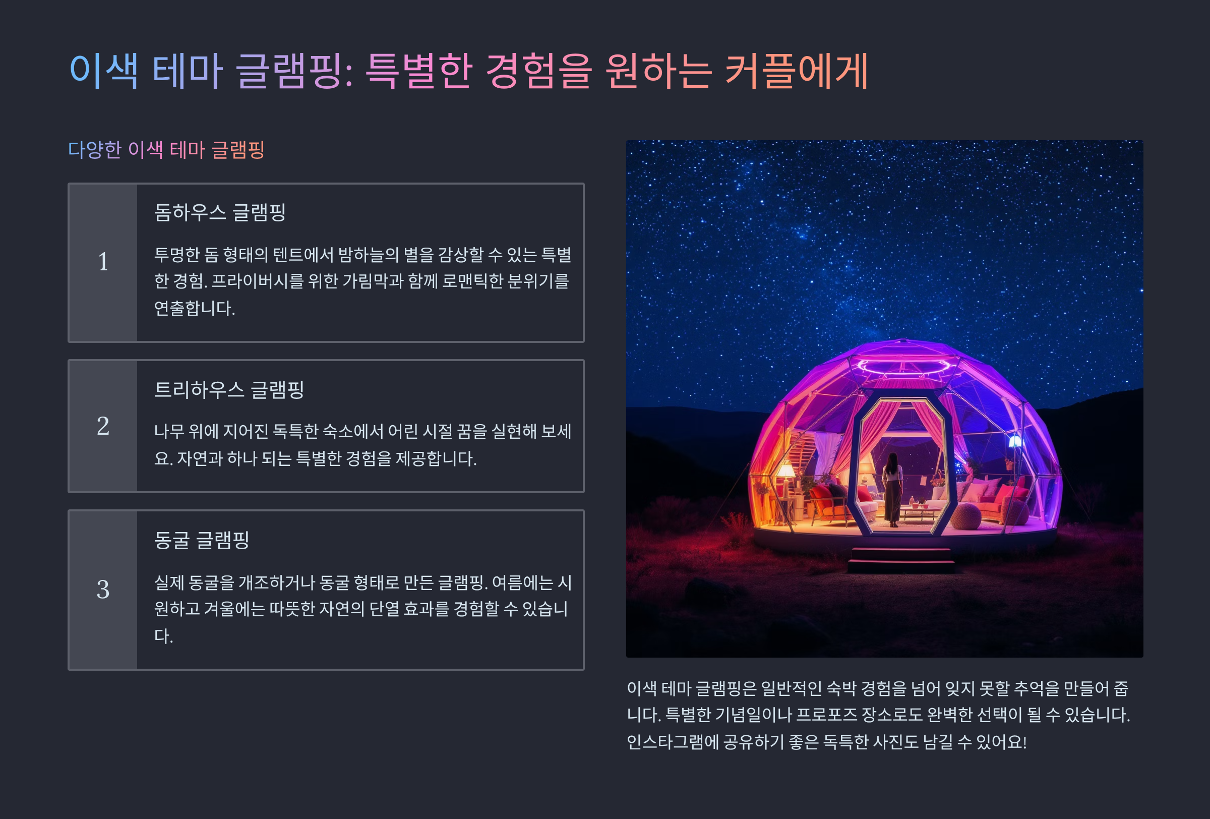 글램핑 커플 전용 테마 숙소: 낭만 가득한 여행지 추천