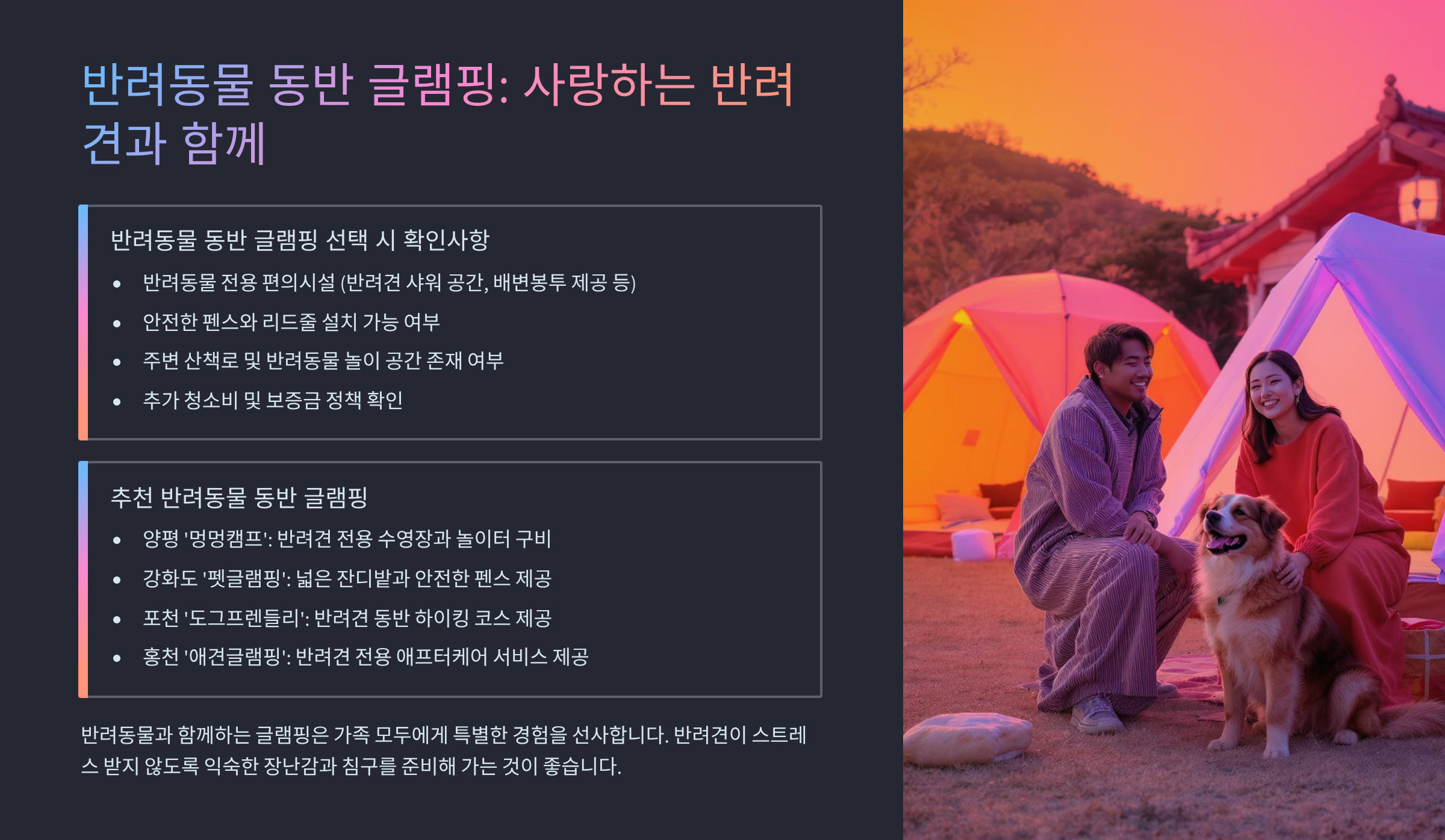 반려동물 동반 글램핑: 사랑하는 반려견과 함께