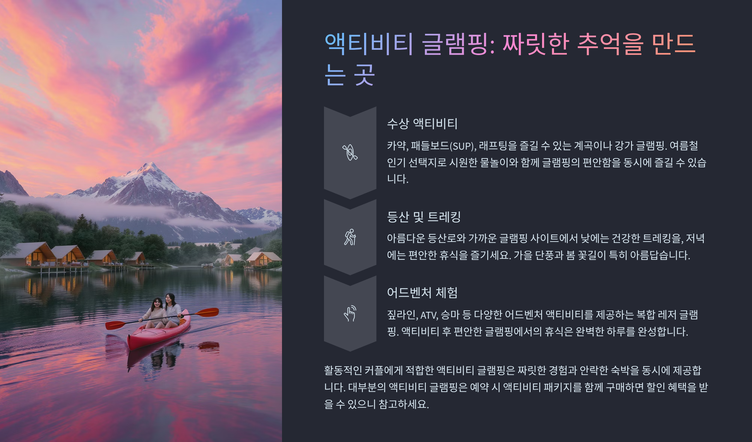 액티비티 글램핑: 짜릿한 추억을 만드는 곳