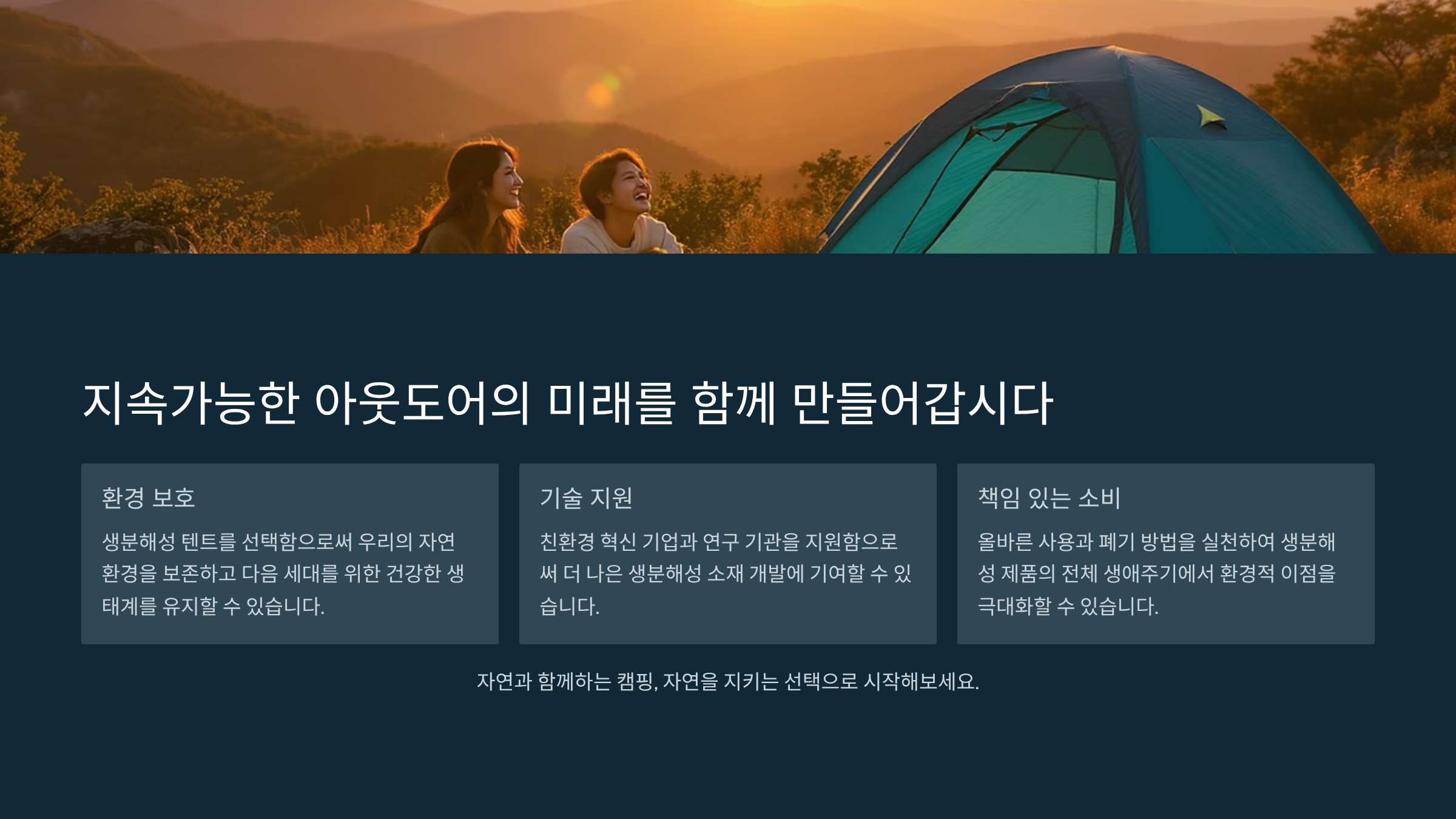내가 생각했을 때, 생분해성 텐트는 단순한 제품을 넘어 환경 보호라는 가치를 담고 있습니다. 이는 소비자들이 자신의 소비가 환경에 미치는 영향을 고려하게 만드는 중요한 변화의 시작이라고 봅니다. 앞으로 더욱 많은 캠핑 애호가들이 이러한 제품을 선택함으로써, 지속가능한 아웃도어 문화가 확산될 것입니다.