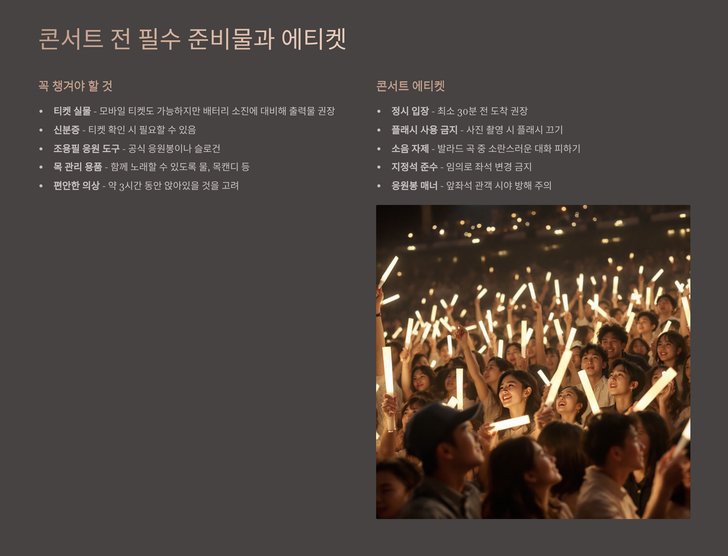 콘서트 전 필수 준비물과 에티켓