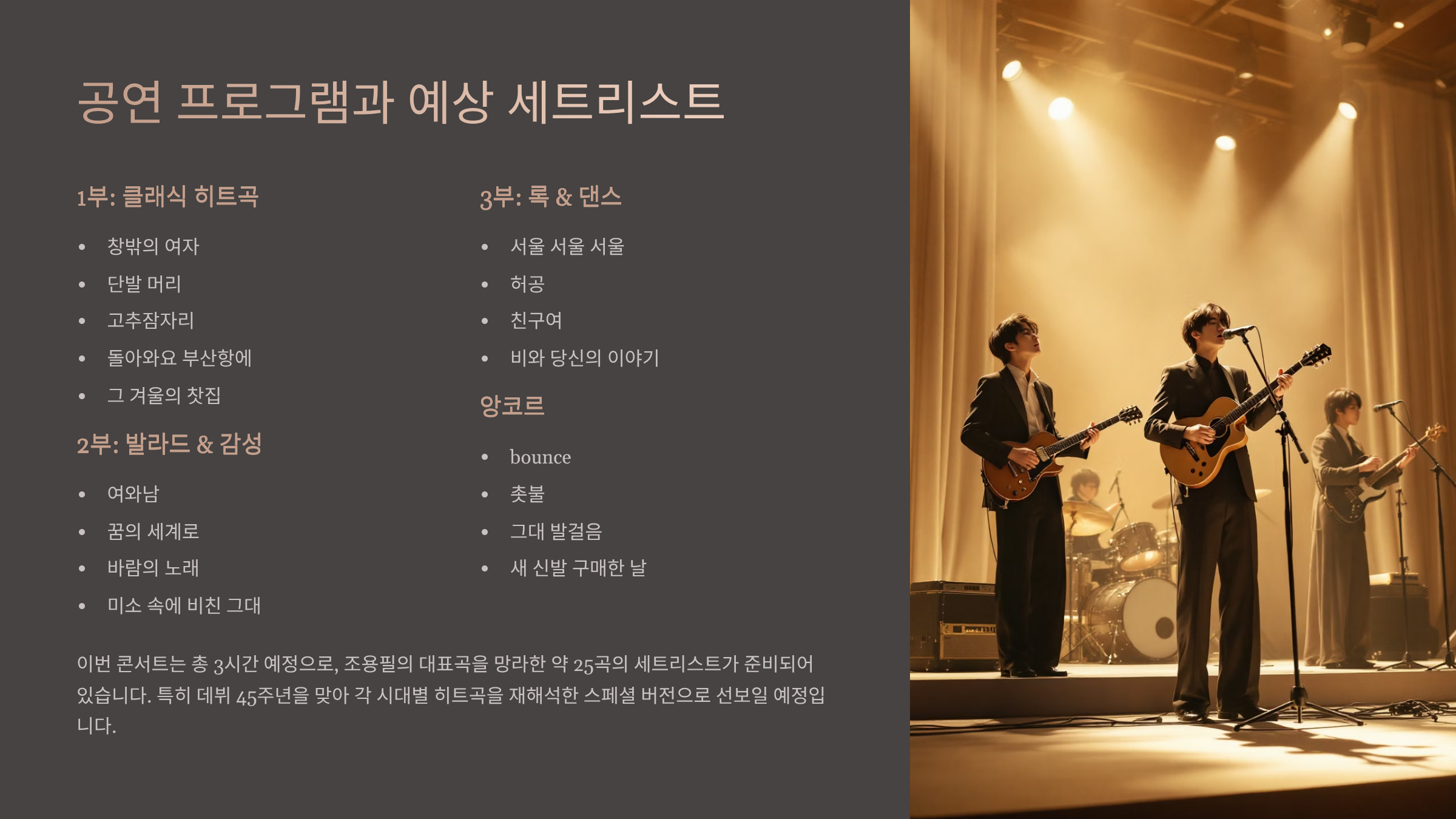 공연 프로그램과 예상 세트리스트
