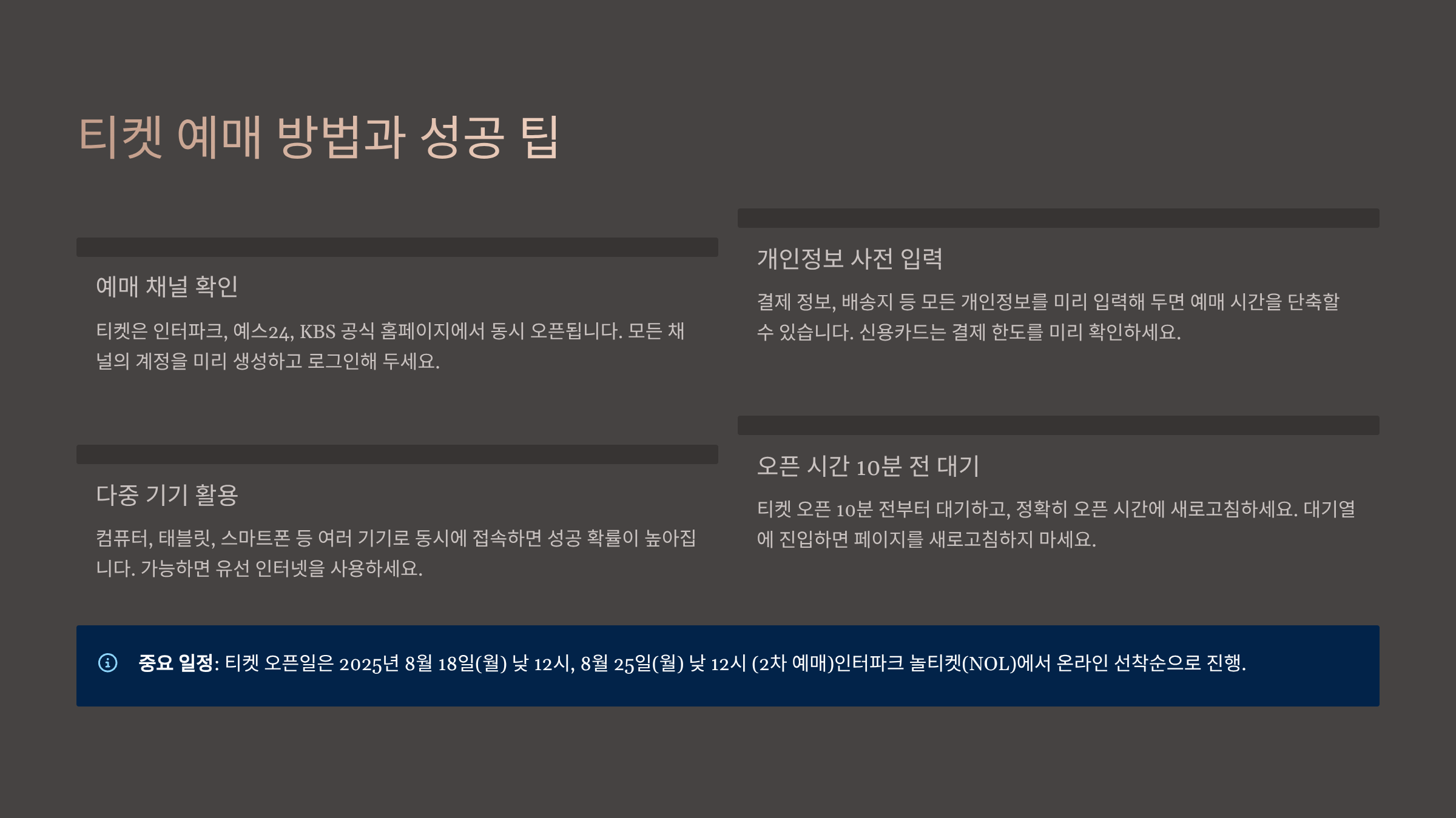 티켓 예매 방법과 성공 팁