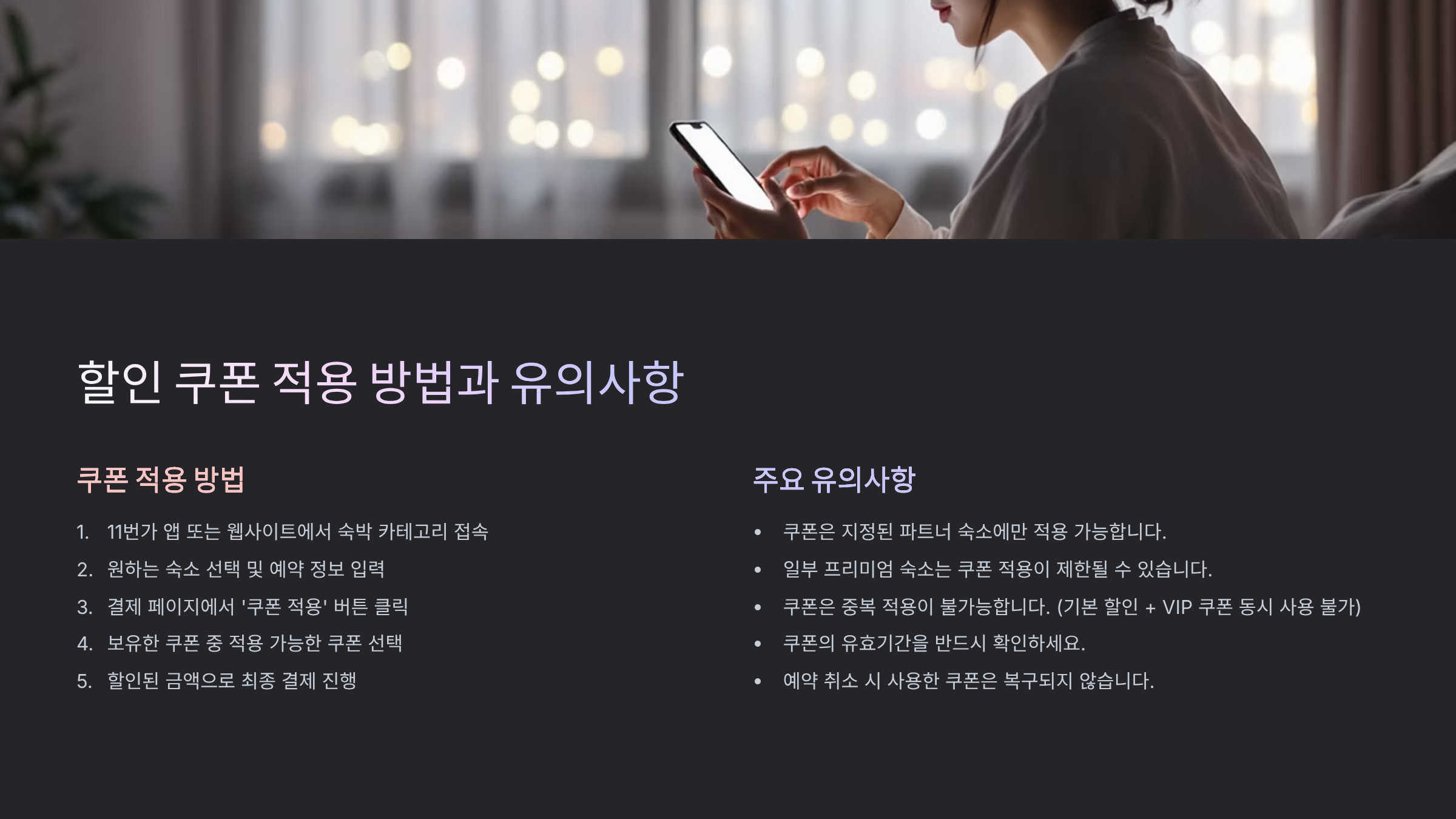 출처: 11번가 공식 참여 숙소 목록할인율 극대화를 위한 추가 꿀팁