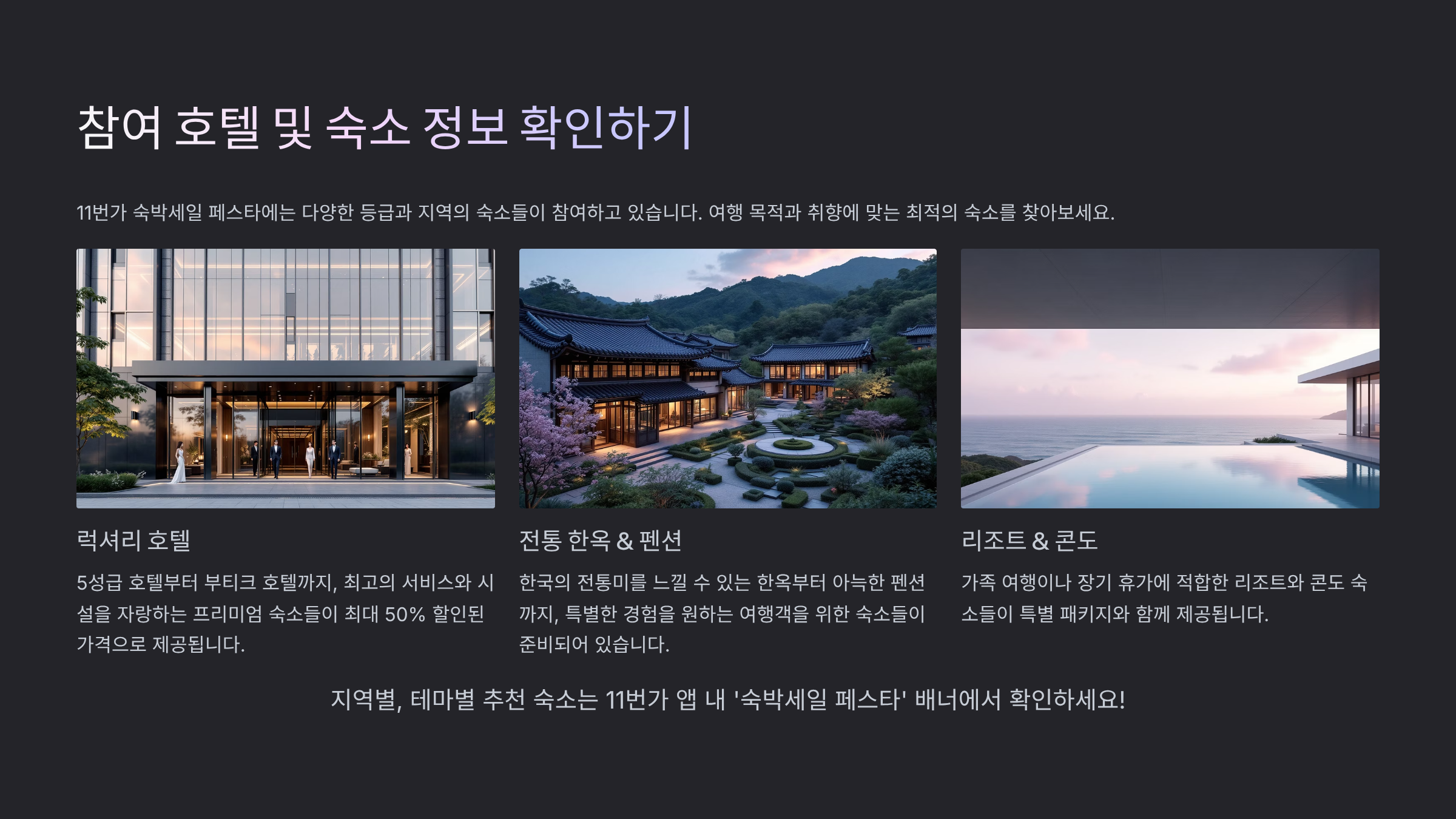 출처: 11번가 프로모션 페이지 참고참여 호텔 및 숙소 정보 확인하기