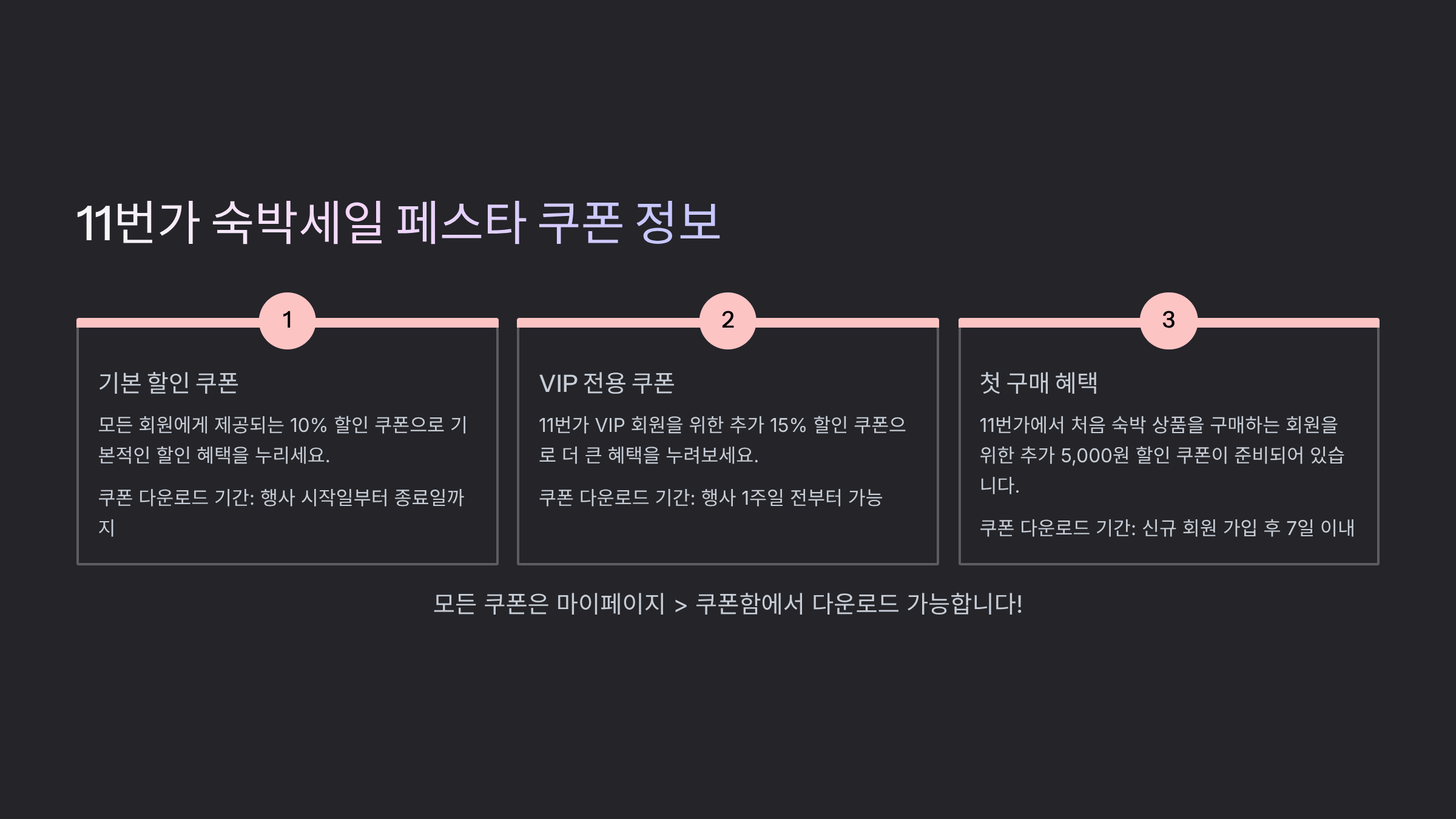 | 1단계 | 11번가 숙박세일 페스타 페이지에서 쿠폰 다운로드 |