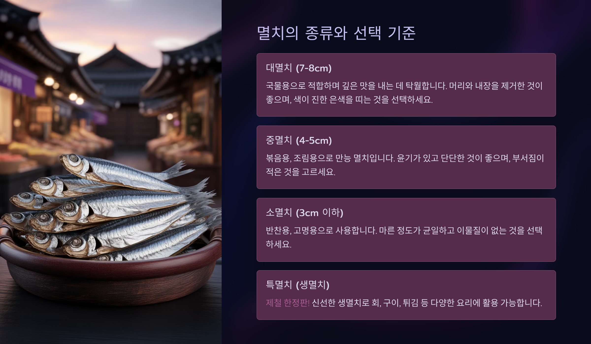 멸치의 종류와 선택 기준