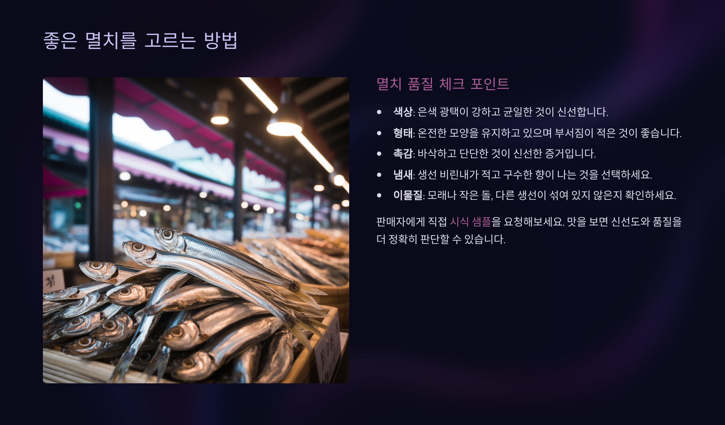 | 구분 | 좋은 멸치의 특징 |
