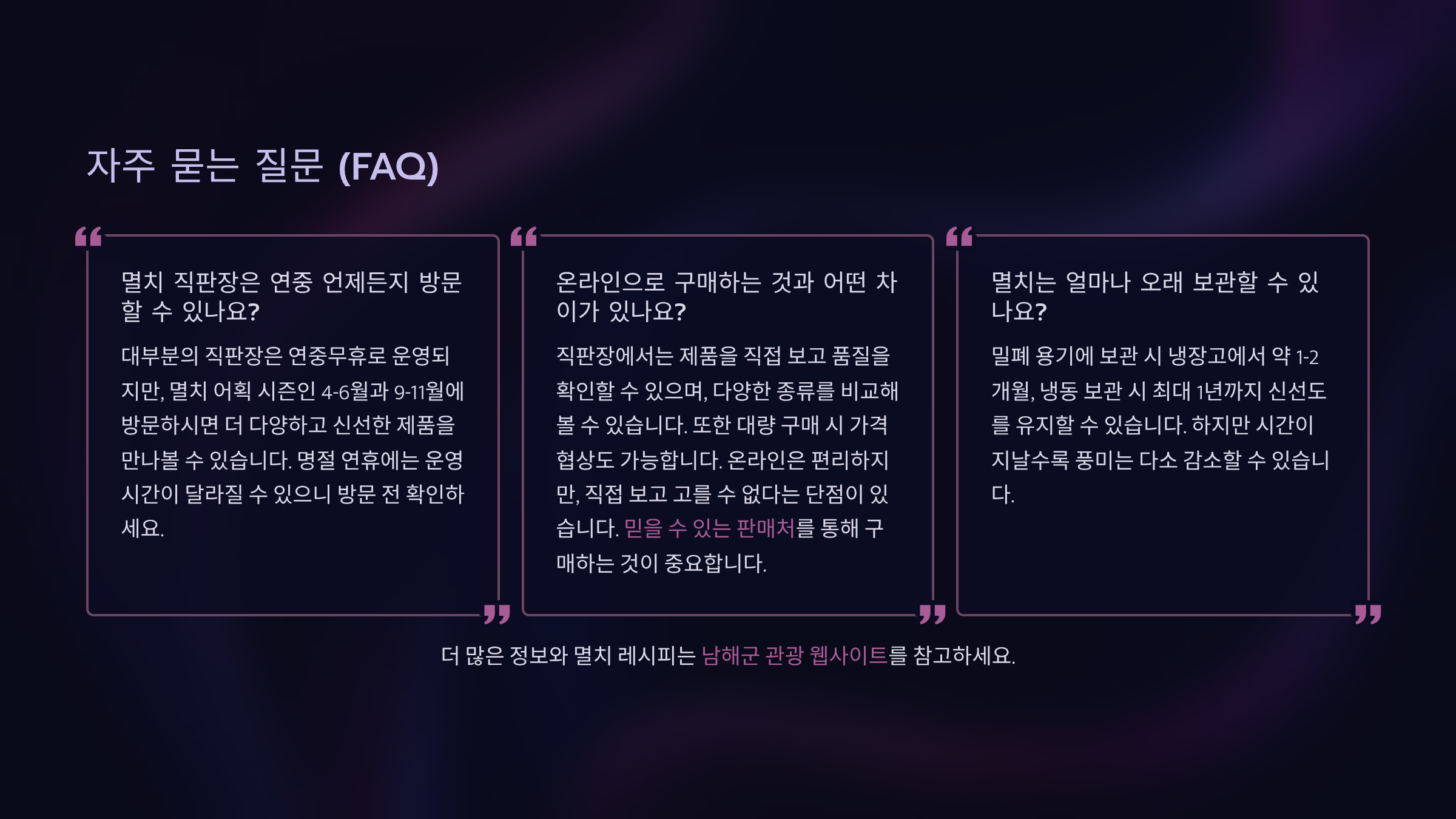 | 구분 | 온라인 구매 | 남해 멸치 직판장 |