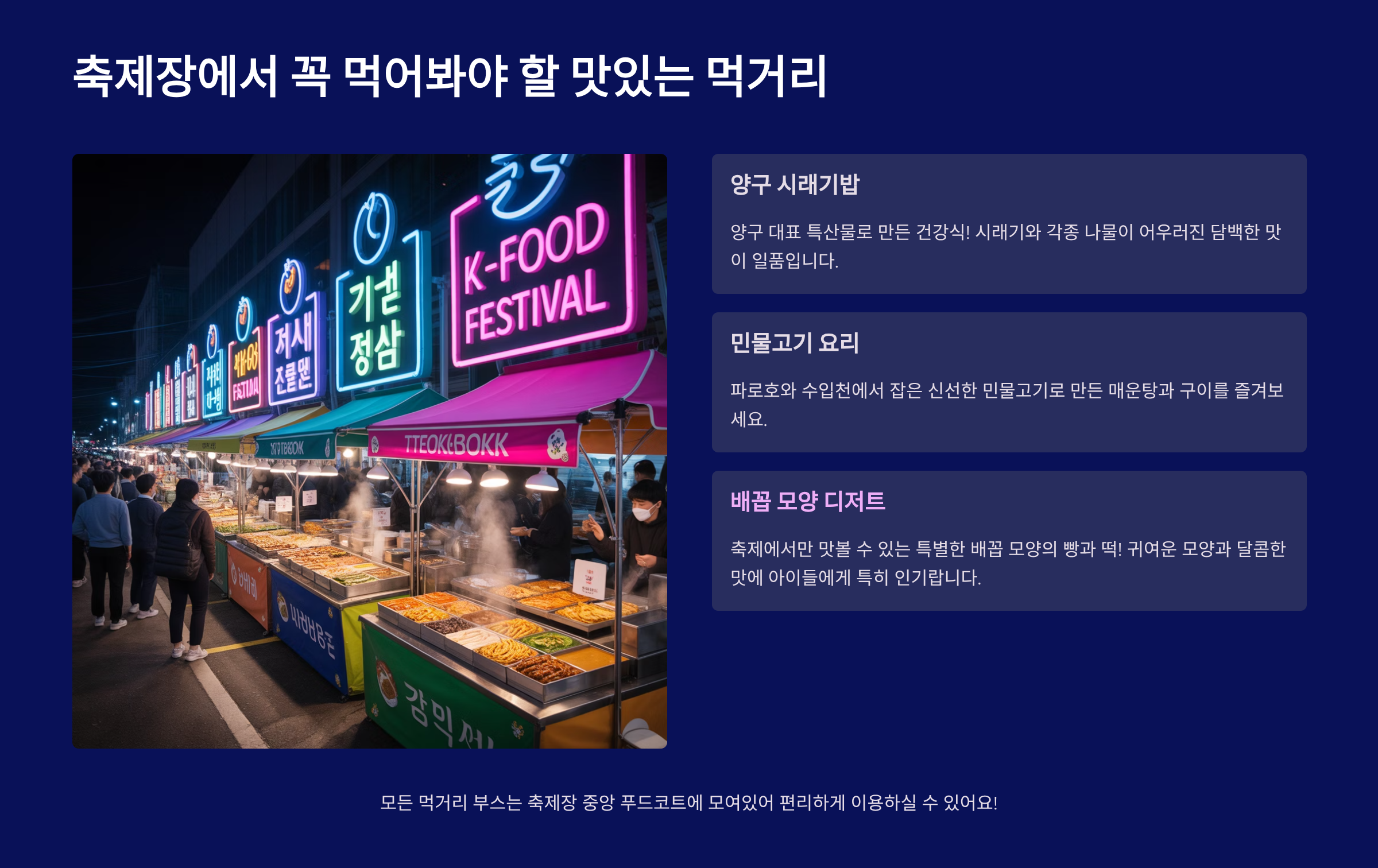 프로그램 예약하기3. 축제장에서 꼭 먹어봐야 할 먹거리