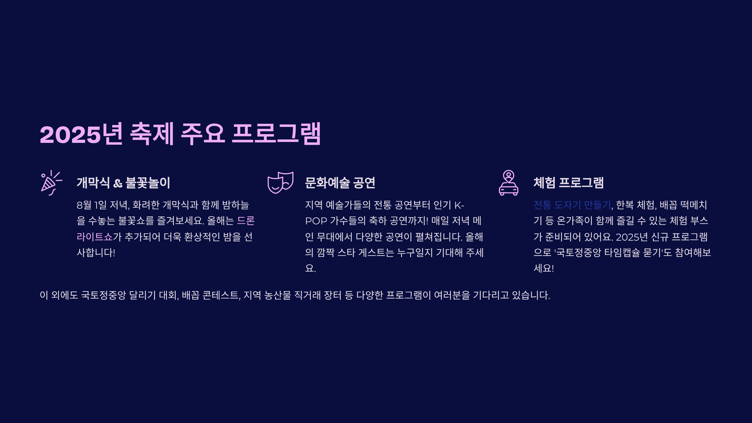 양구군 관광 홈페이지 방문하기2. 2025년 축제 주요 프로그램