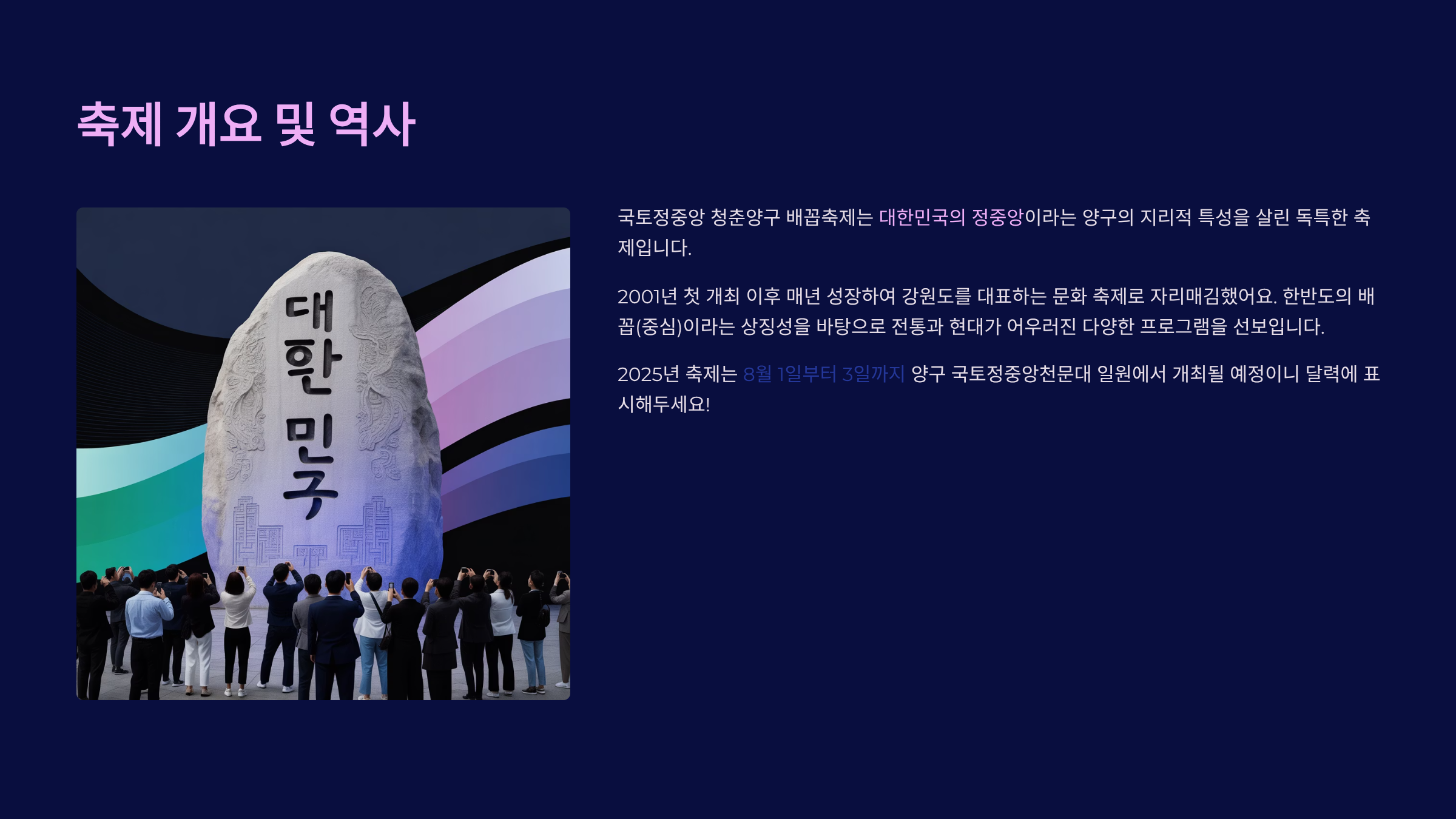 국토정중앙 청춘양구 배꼽축제: 2025년 축제 완벽 즐기기 가이드