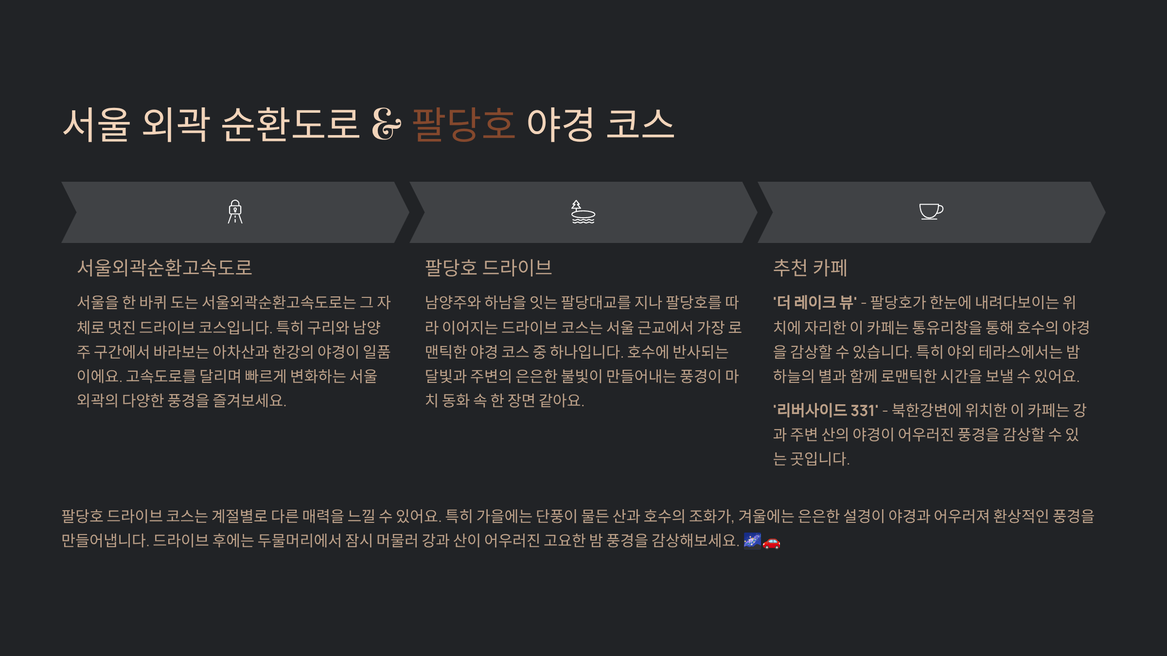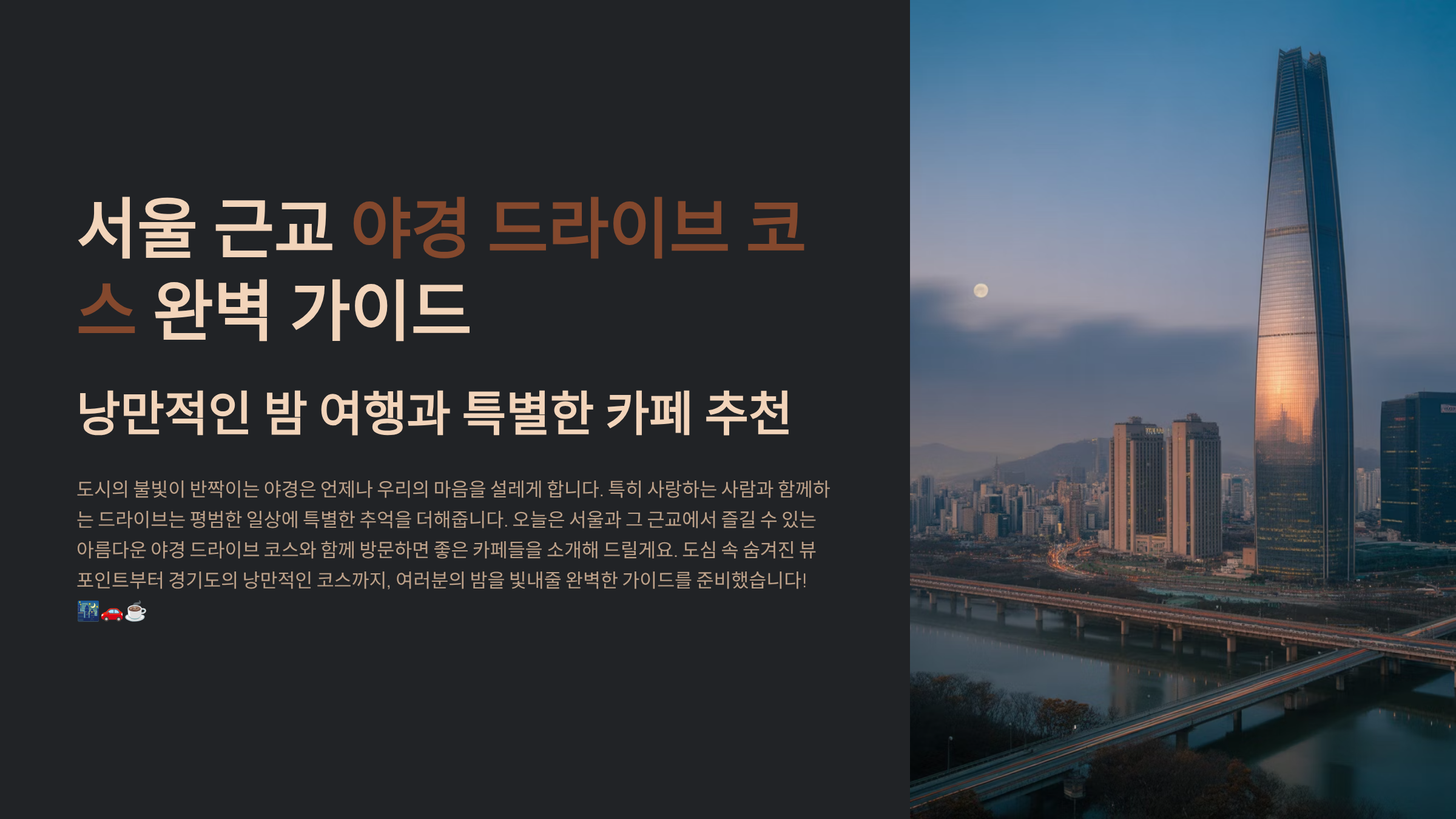 서울 근교 야경 드라이브 코스 + 카페 추천: 낭만적인 밤 여행 가이드