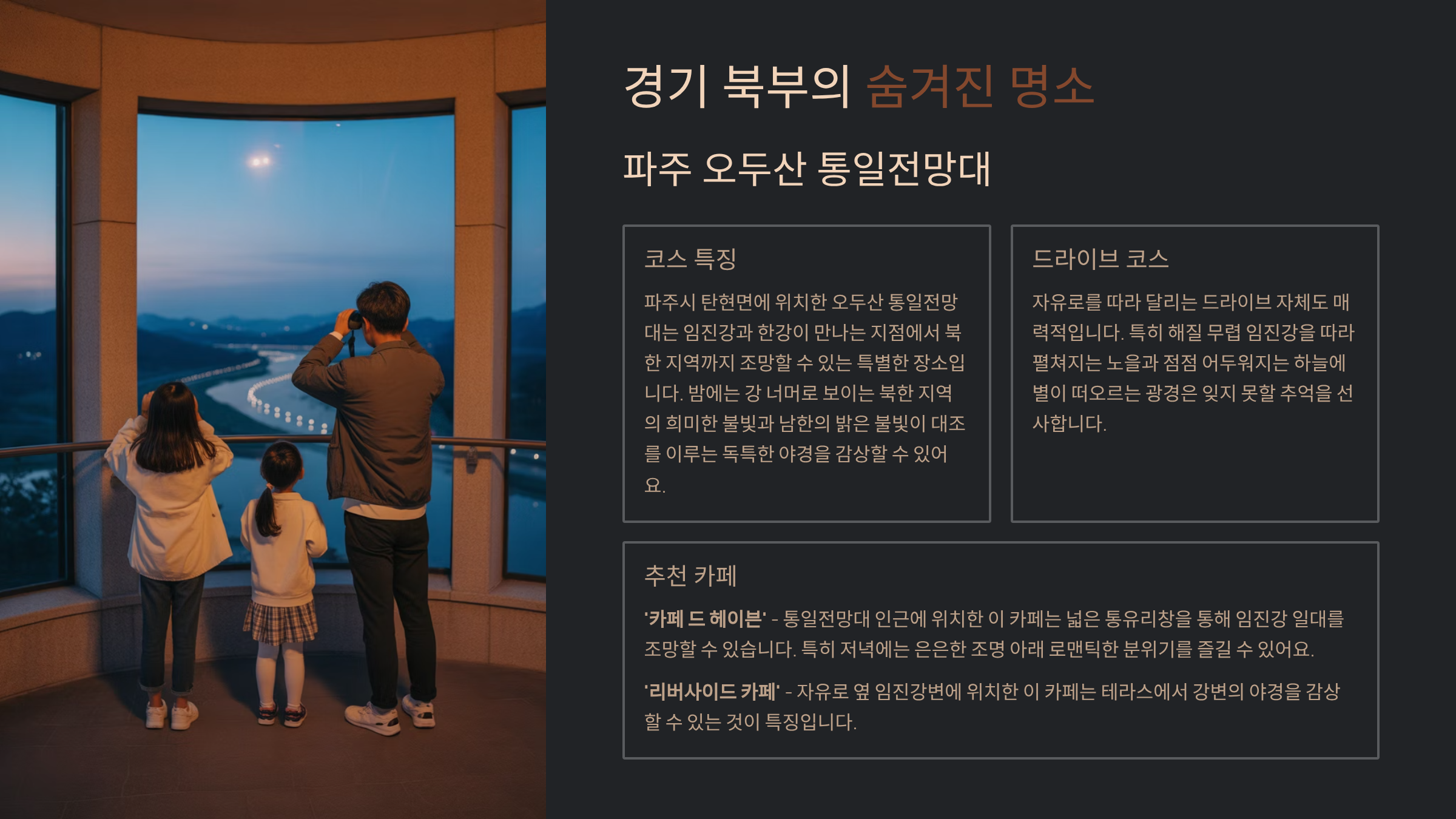 | 오두산 통일전망대 | 북한 야경 감상, 역사적 의미 |