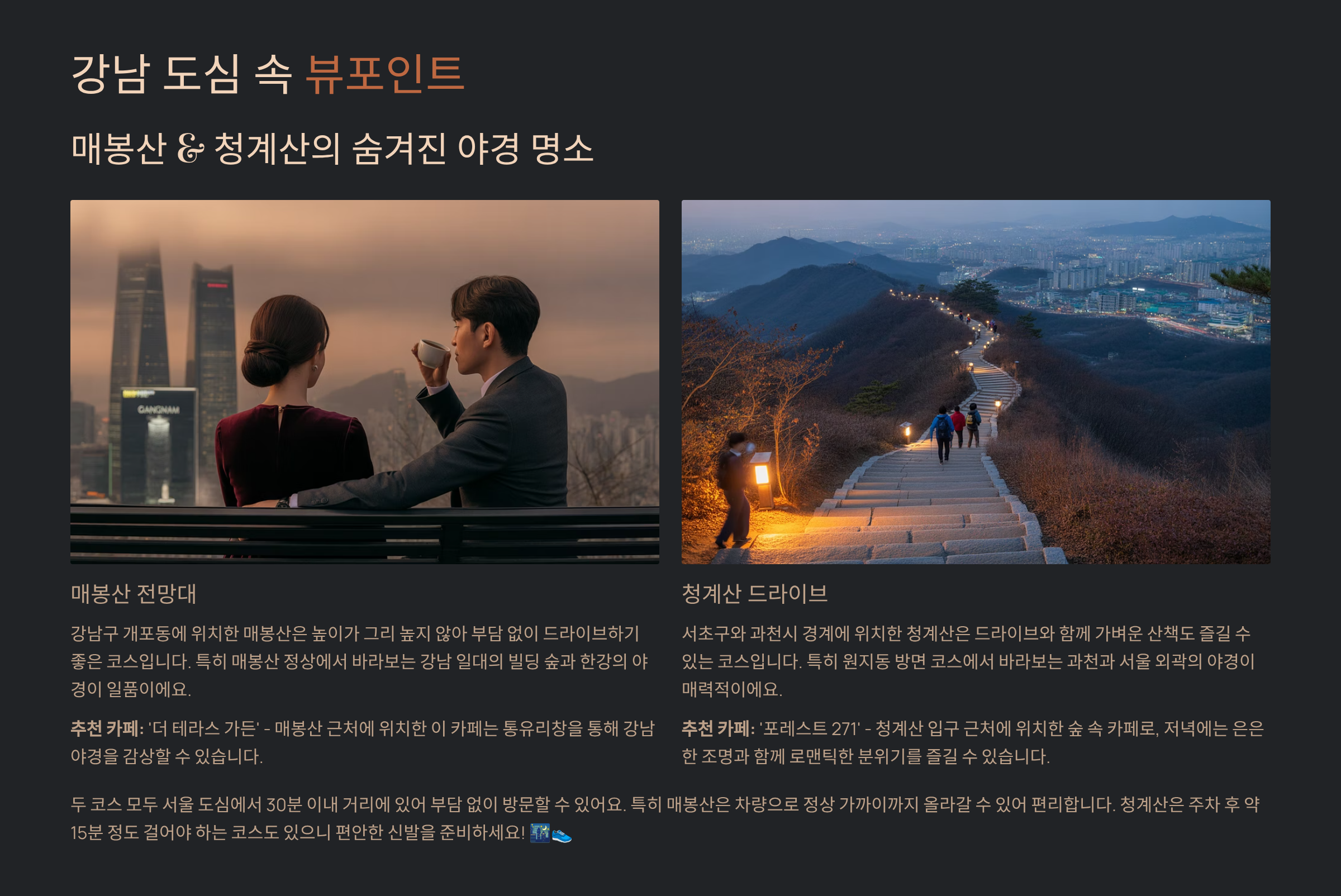 메뉴 확인하기3. 강남 도심 속 뷰포인트: 매봉산 & 청계산