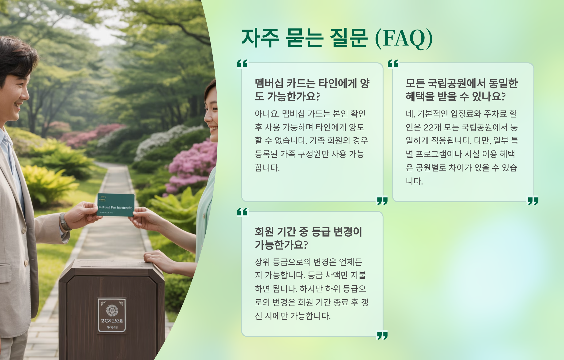 면책 조항: 본 글은 정보 제공 목적으로 작성되었으며, 국립공원 멤버십 정책 및 혜택은 공단 사정에 따라 변동될 수 있습니다. 본문에 언급된 수치나 정책은 2025년 기준 추정치이므로, 최종적인 가입 조건과 혜택은 이용자 본인이 국립공원공단 공식 홈페이지에서 직접 확인해야 할 책임이 있습니다.