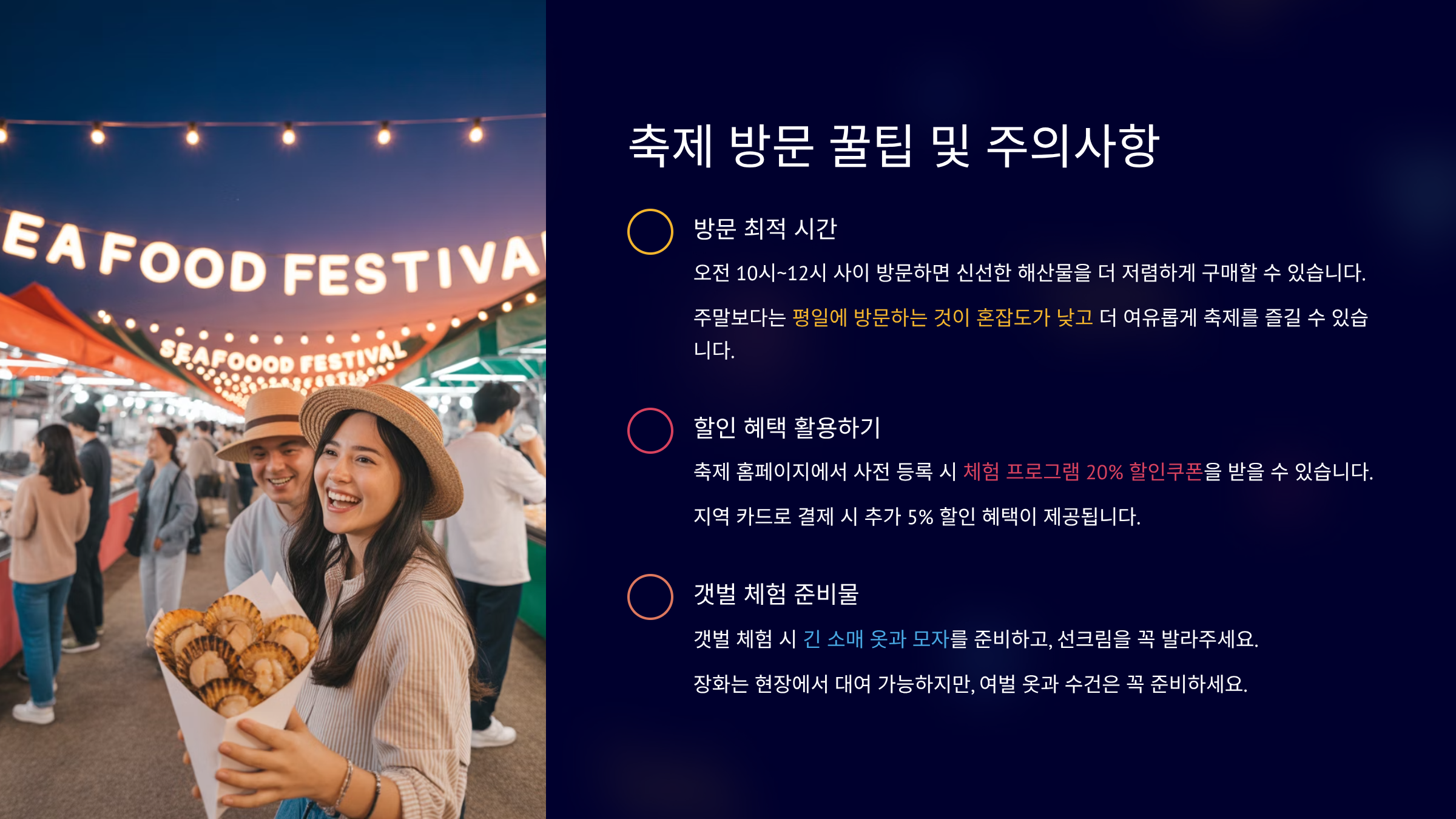 축제 방문 꿀팁 및 주의사항 📝