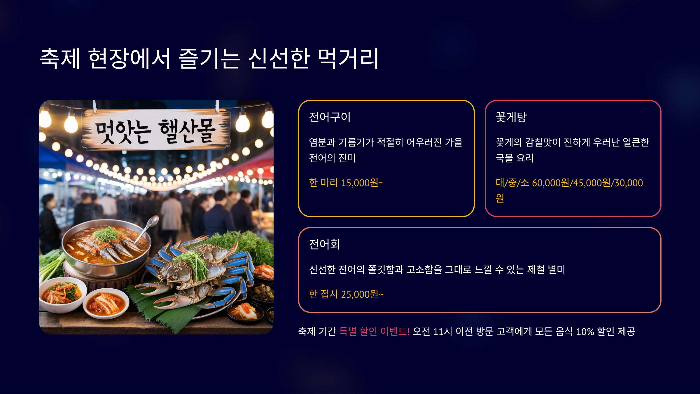 축제 현장에서 즐기는 신선한 먹거리 😋