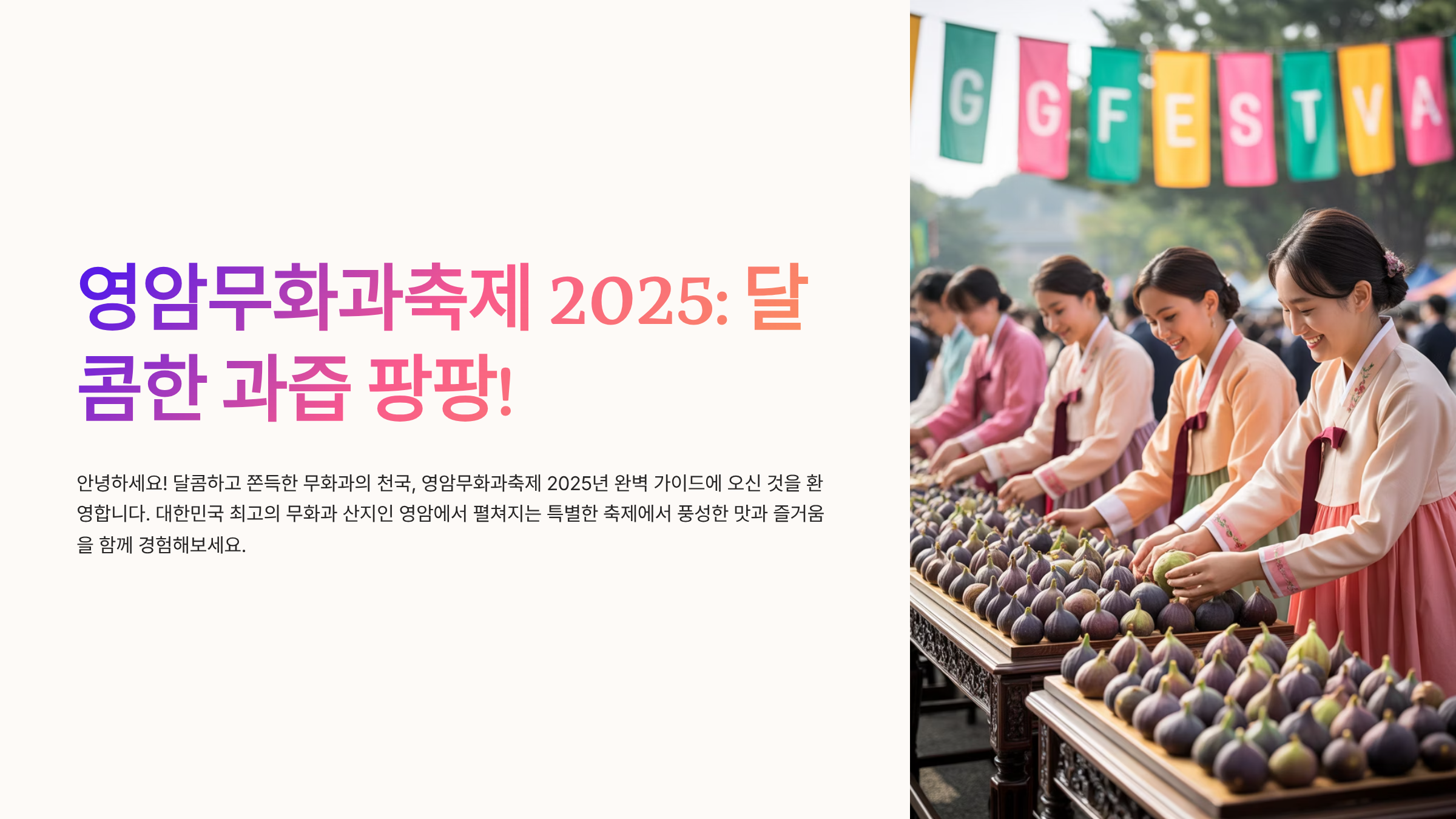 2025년 영암무화과축제, 놓칠 수 없는 축제 정보는? 대한민국 무화과 생산량의 60%를 차지하는 영암에서 열리는 이번 축제는 무더위를 잊게 할 만큼 달콤하고 풍성한 경험을 선사합니다. 축제 일정, 주요 행사, 교통 정보부터 무화과의 효능, 활용법까지 이 글 하나로 완벽하게 준비하고 축제의 주인공이 되어보세요.