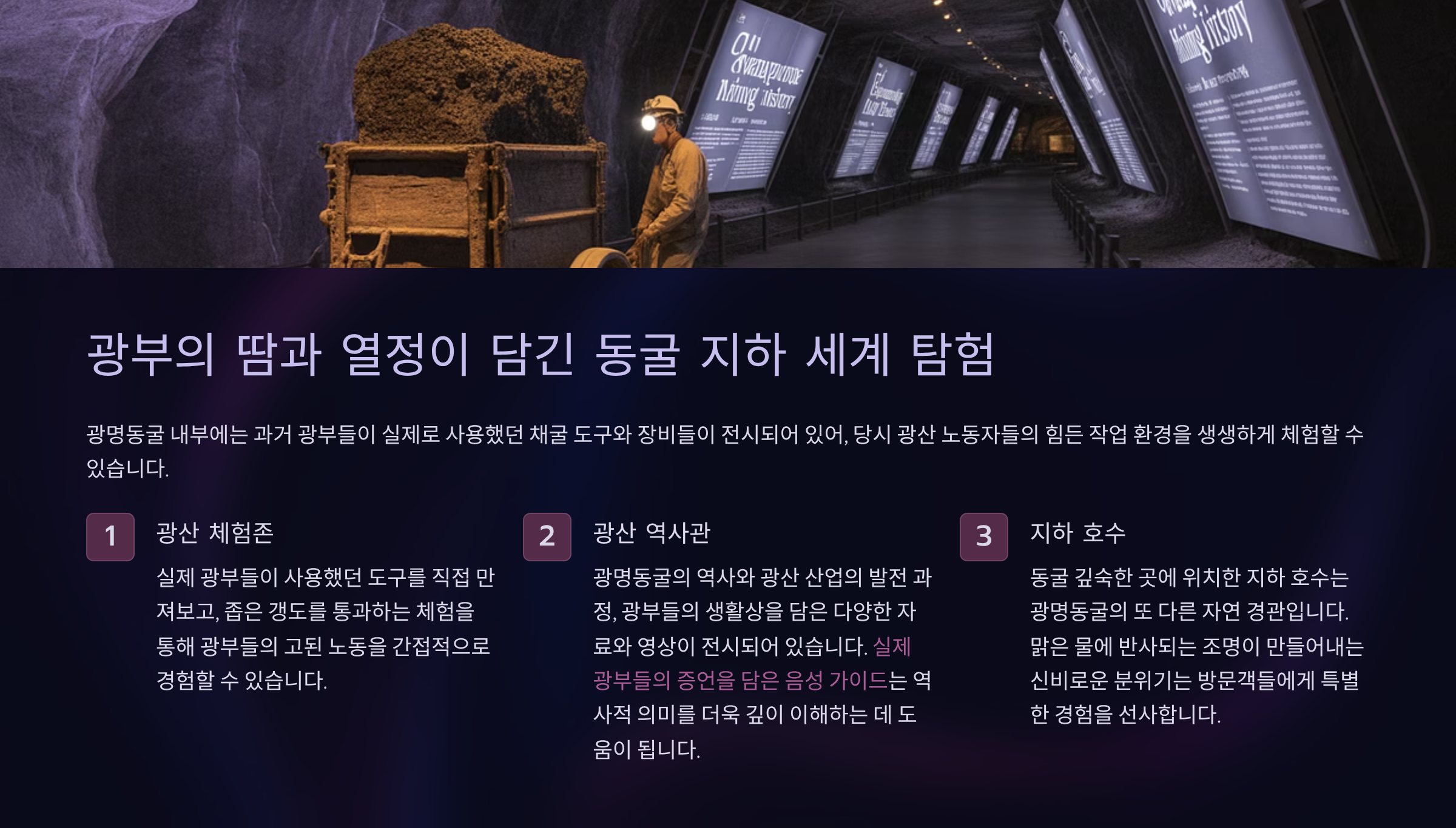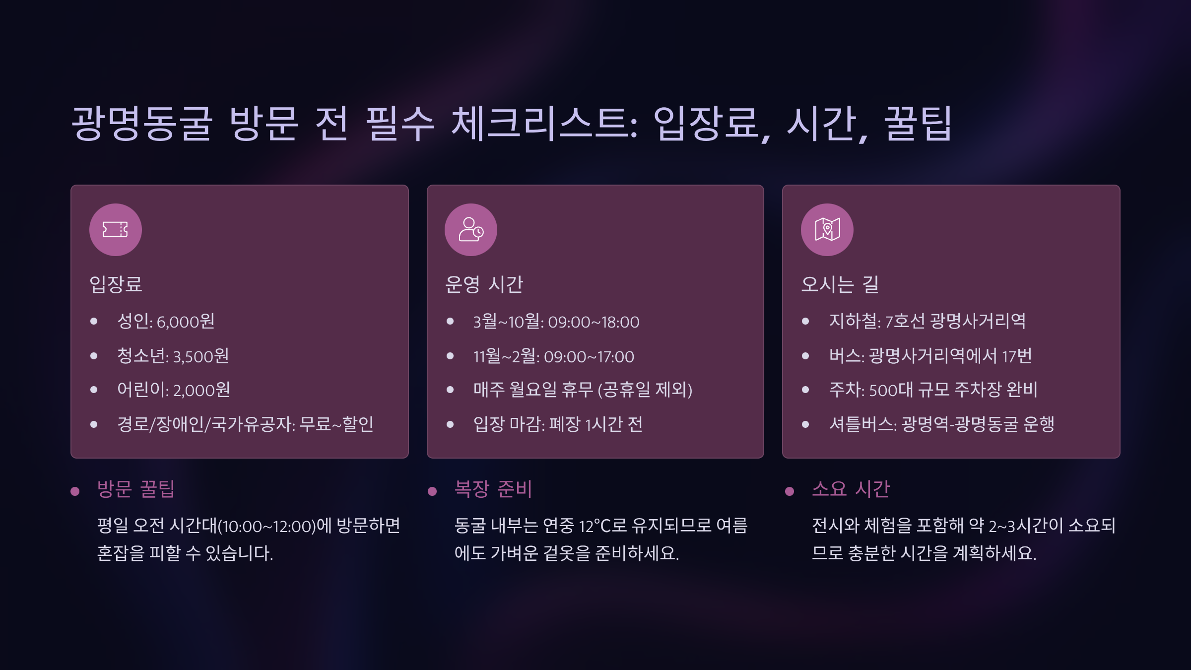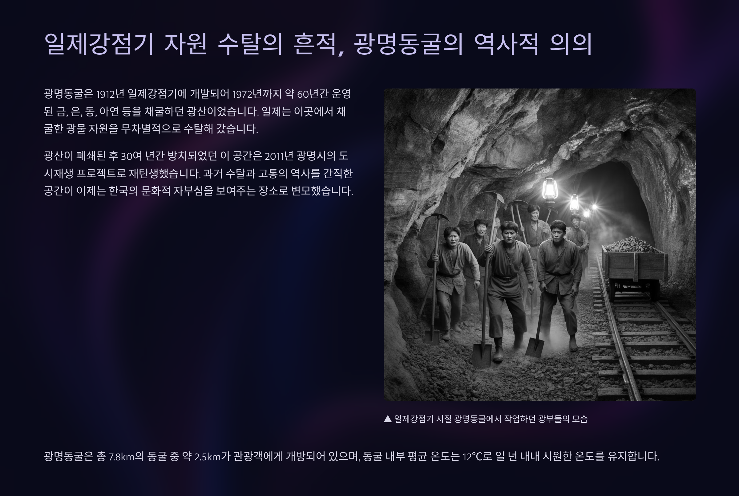 💡 광명동굴 핵심 요약
