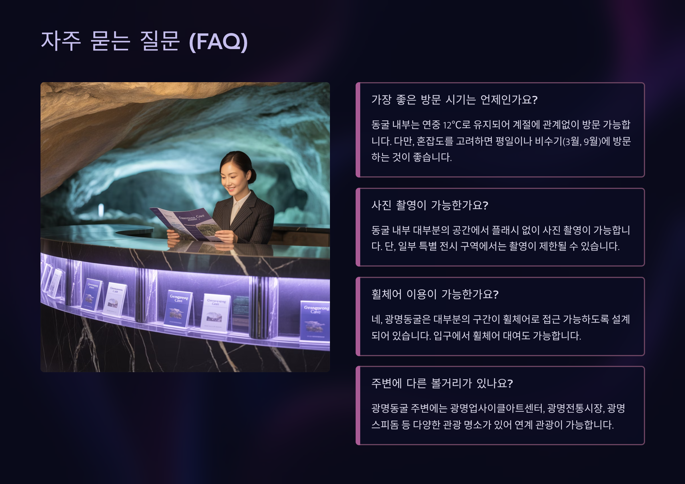 Q1: 광명동굴은 연중 내내 방문할 수 있나요?