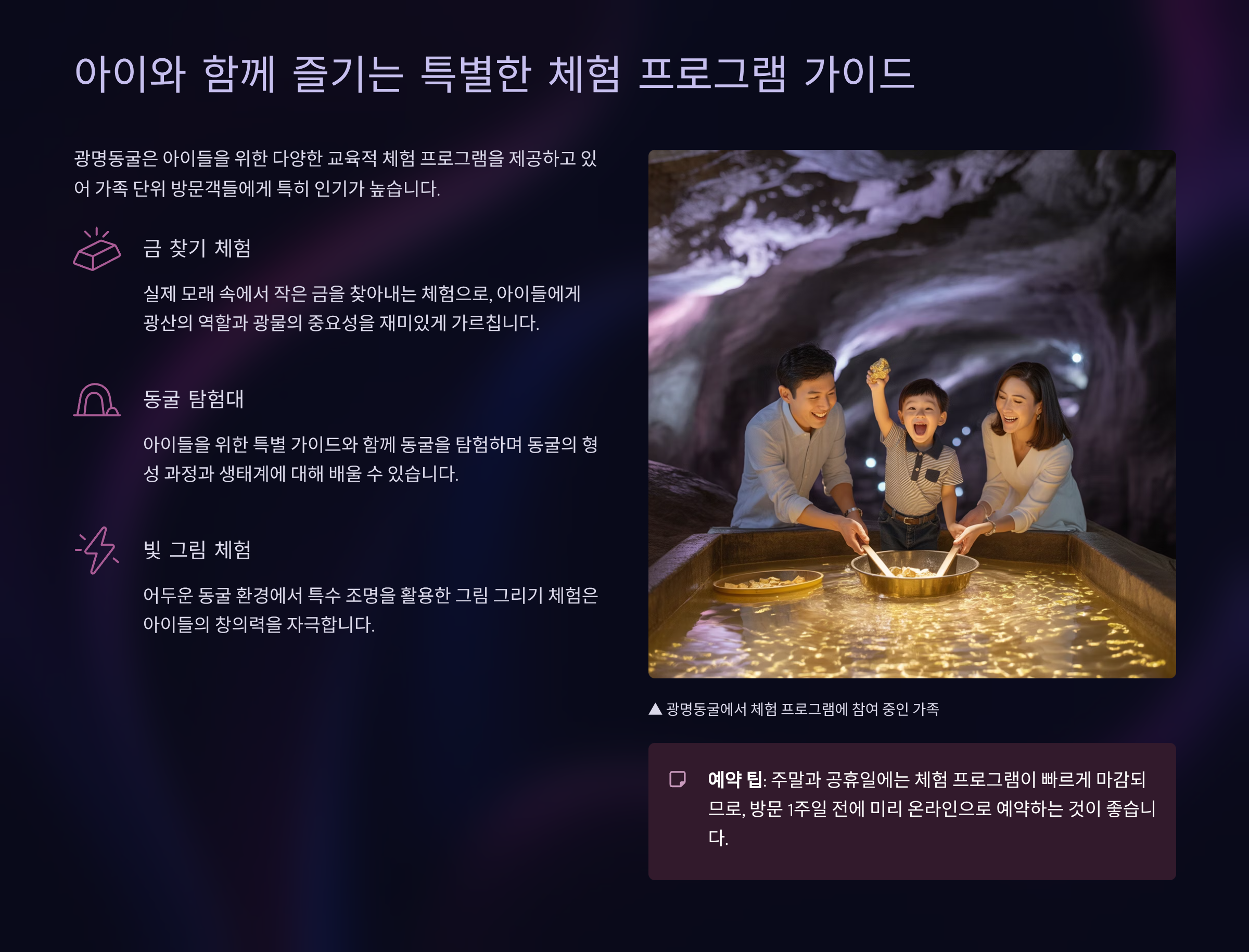 광명동굴 주요 체험 프로그램