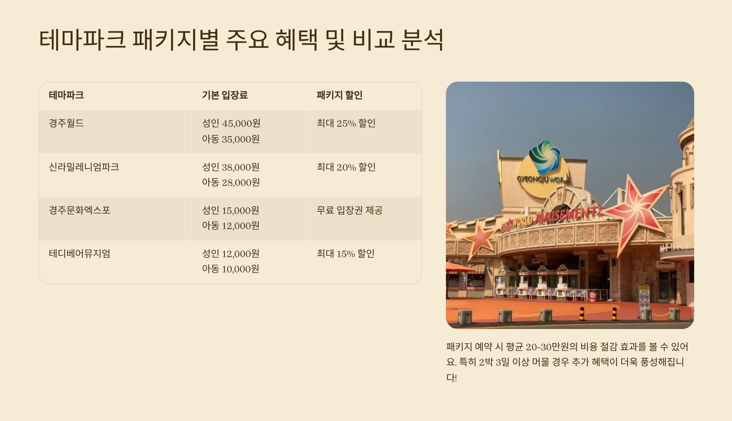 아이와 함께하는 여행은 즐거움만큼이나 고민거리도 많습니다. 쉴 틈 없이 아이를 돌봐야 하는 부모님, 새로운 경험을 갈망하는 아이 모두를 만족시키는 완벽한 해답은 바로 경주 키즈풀빌라와 테마파크 패키지입니다. 경주는 찬란한 역사와 아름다운 자연을 품고 있을 뿐만 아니라, 아이들이 마음껏 뛰어놀 수 있는 다양한 테마파크와 키즈 친화적인 숙소들이 잘 갖춰져 있어 가족 여행지로 최고의 선택입니다. 이 글에서는 경주 키즈풀빌라와 테마파크 패키지를 선택하는 기준부터 인기 숙소 추천, 가성비 좋은 패키지 구성 팁, 그리고 예약 시 주의사항까지, 아이와 함께하는 경주 여행을 위한 모든 정보를 상세히 담았습니다. 이 글을 통해 우리 가족만의 특별하고 행복한 추억을 만들어보세요.