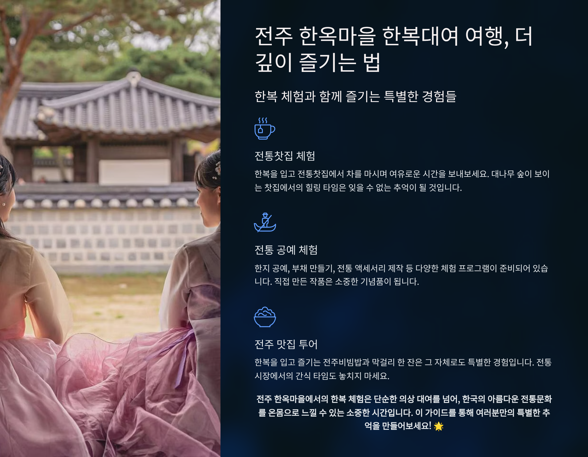 다채로운 즐길 거리로 전주 여행을 완성하세요!