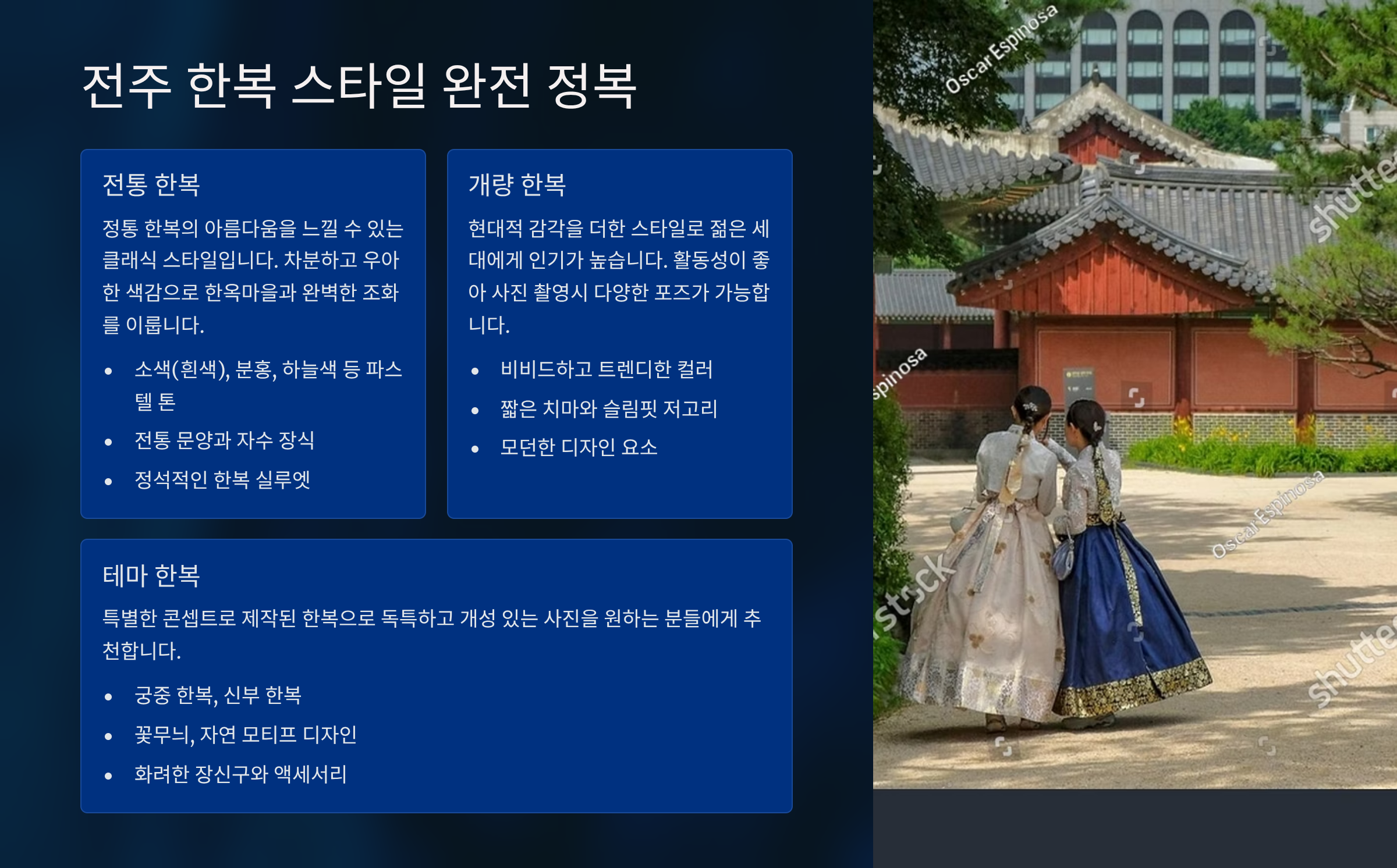 예약 바로가기전주 한복 스타일 완전 정복: 전통 vs. 테마 한복 👗