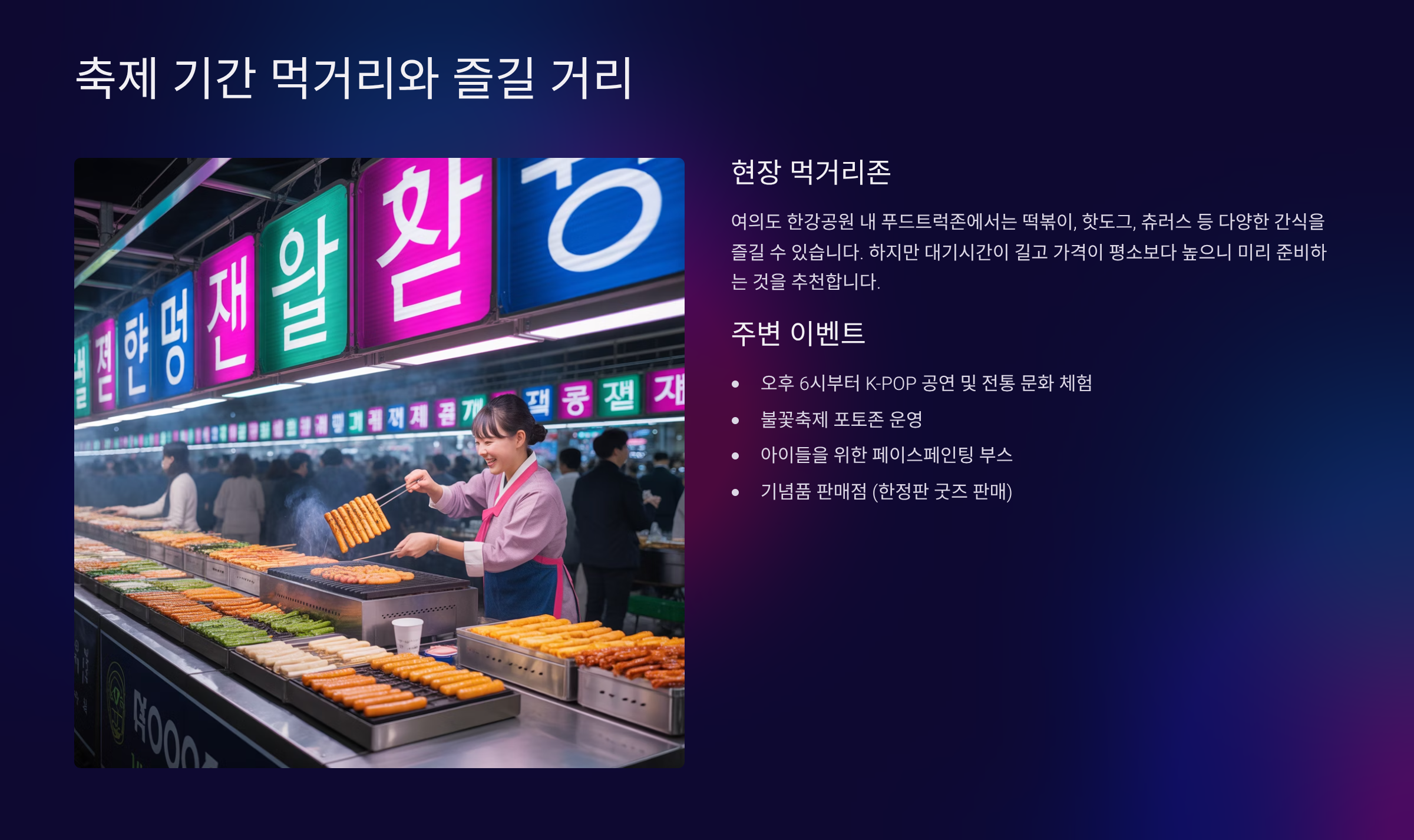 불꽃축제 기간 중 즐길 거리: 먹거리와 주변 이벤트 🎪