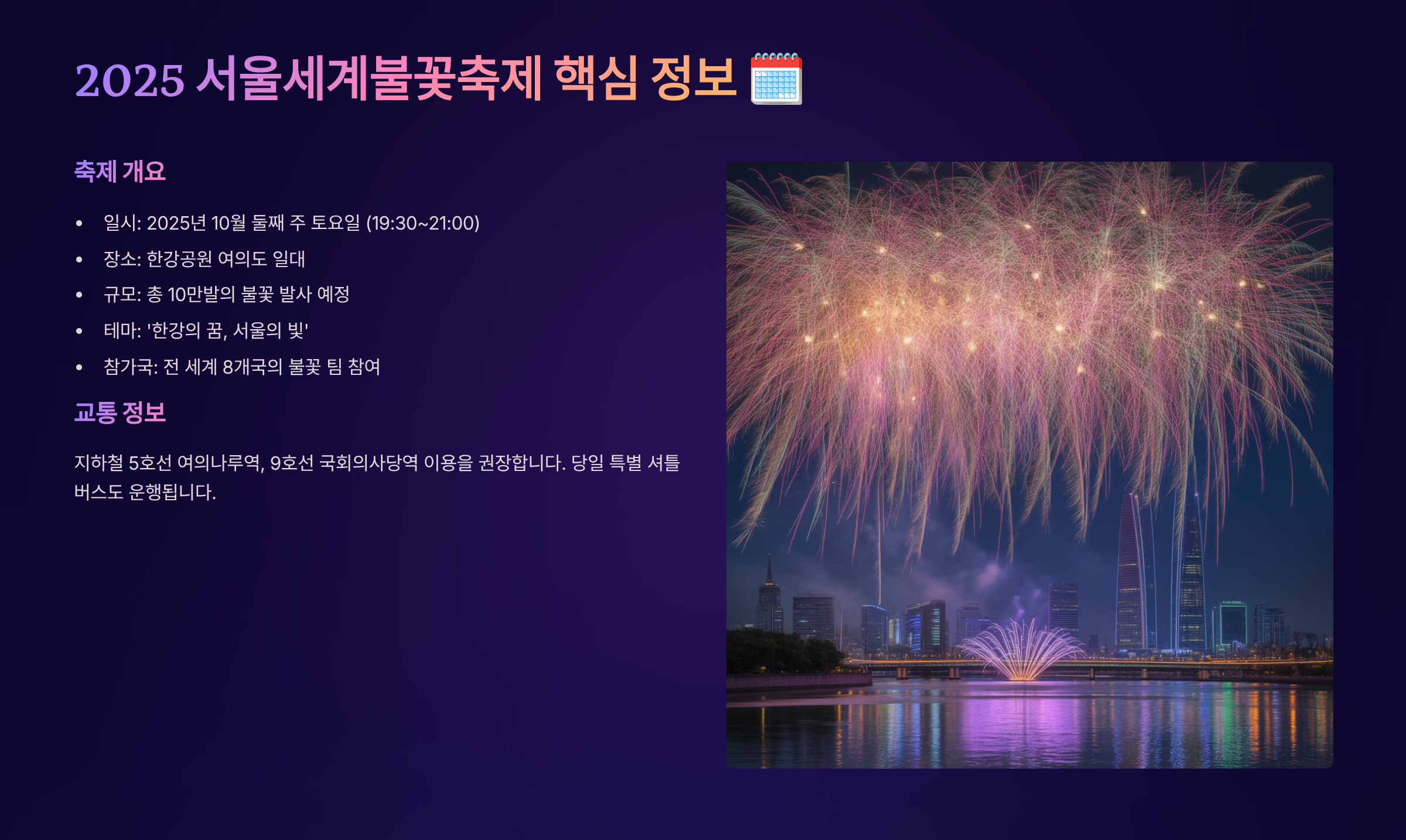 2025 서울세계불꽃축제, 놓쳐서는 안 될 핵심 정보 🗓️