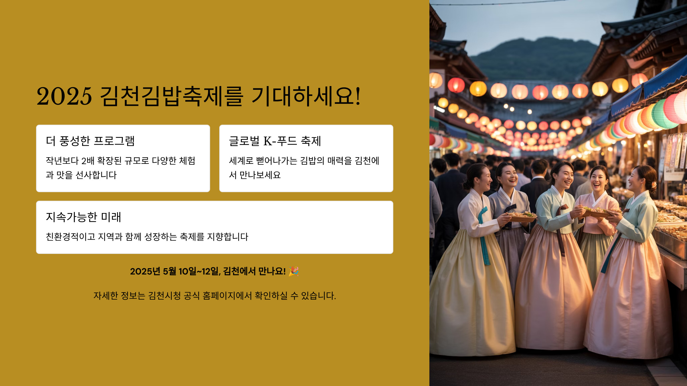 김천김밥축제 2025: 김천의 새로운 역사를 쓰는 K-푸드 페스티벌의 모든 것