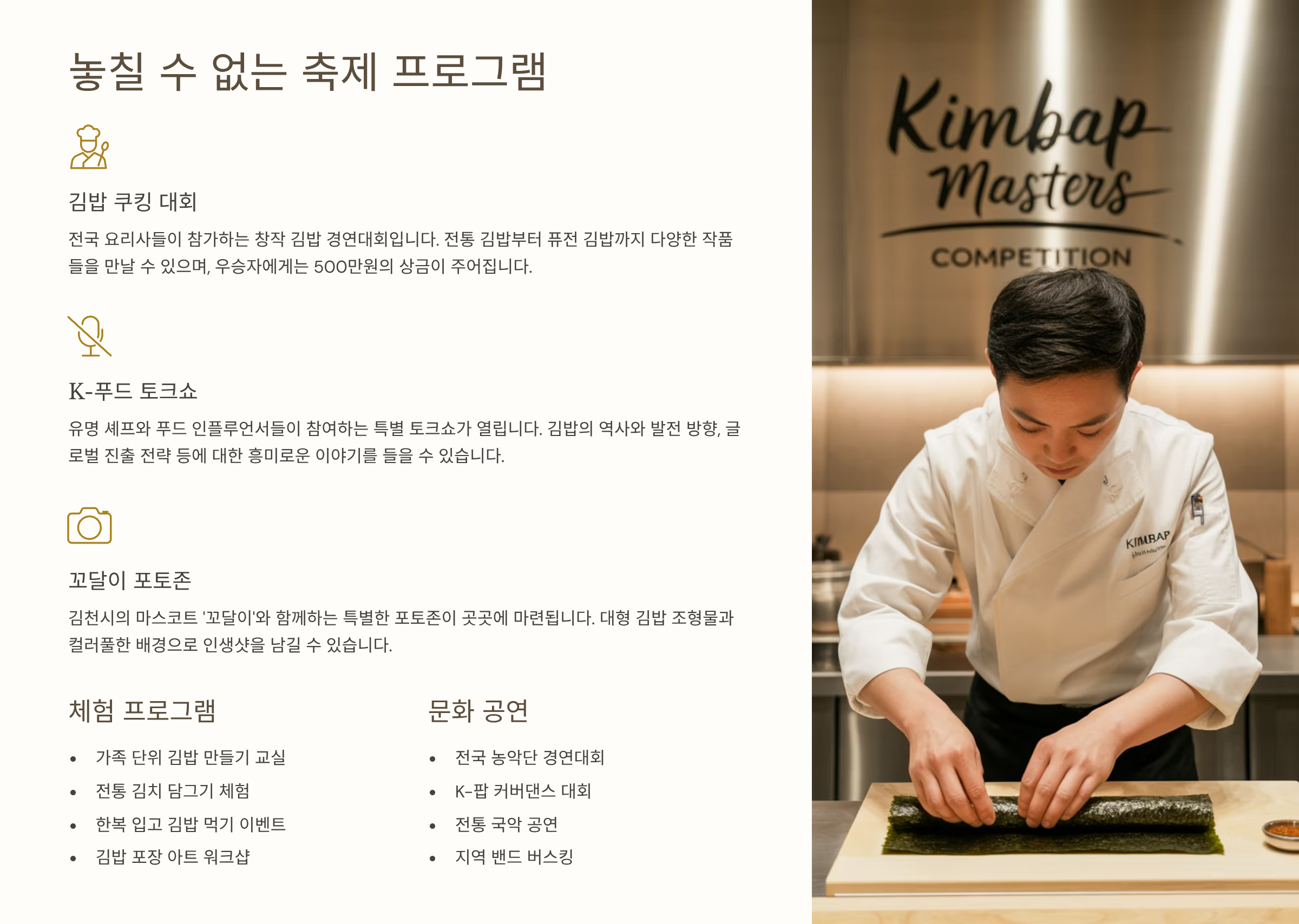 김밥 쿡킹대회부터 꼬달이까지, 놓칠 수 없는 프로그램 📝