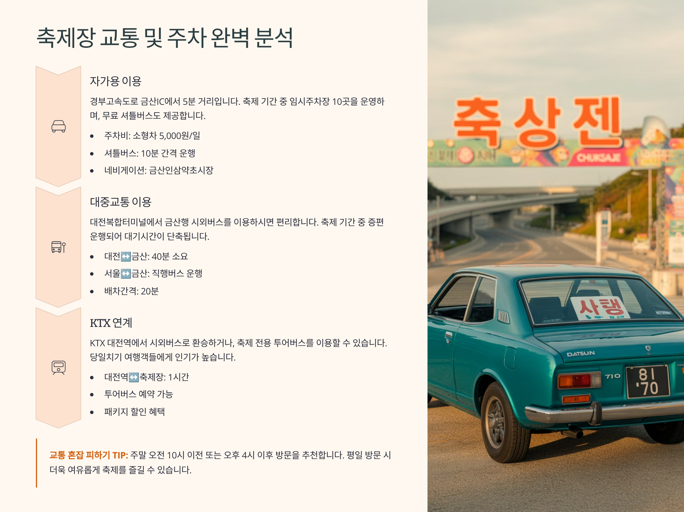 💡 알아두세요! 금산군 공식 관광 앱이나 웹사이트를 이용하면 더욱 상세한 관광 정보와 할인 혜택을 얻을 수 있습니다. 축제 방문 전 미리 확인해 보세요.