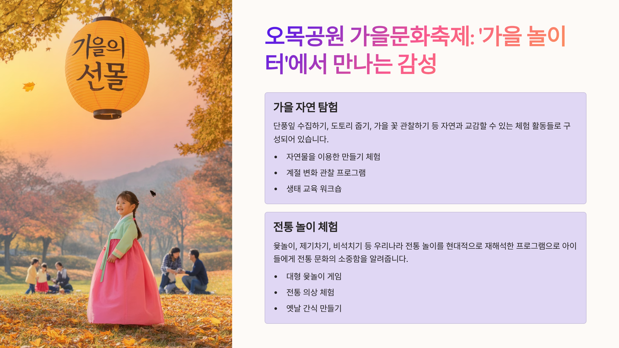 오목공원 가을문화축제: '가을 놀이터'에서 만나는 감성 🍂