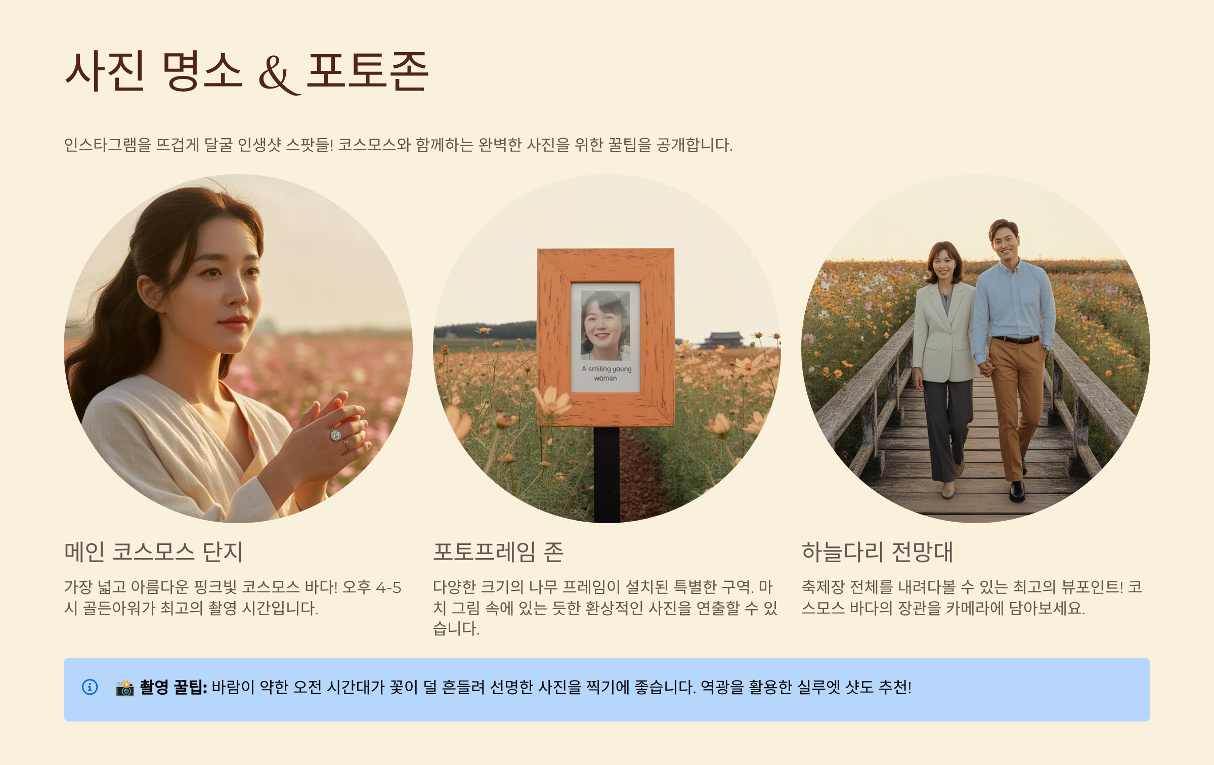 3. 사진 명소 & 포토존: 코스모스 인생샷 찍는 꿀팁 📸