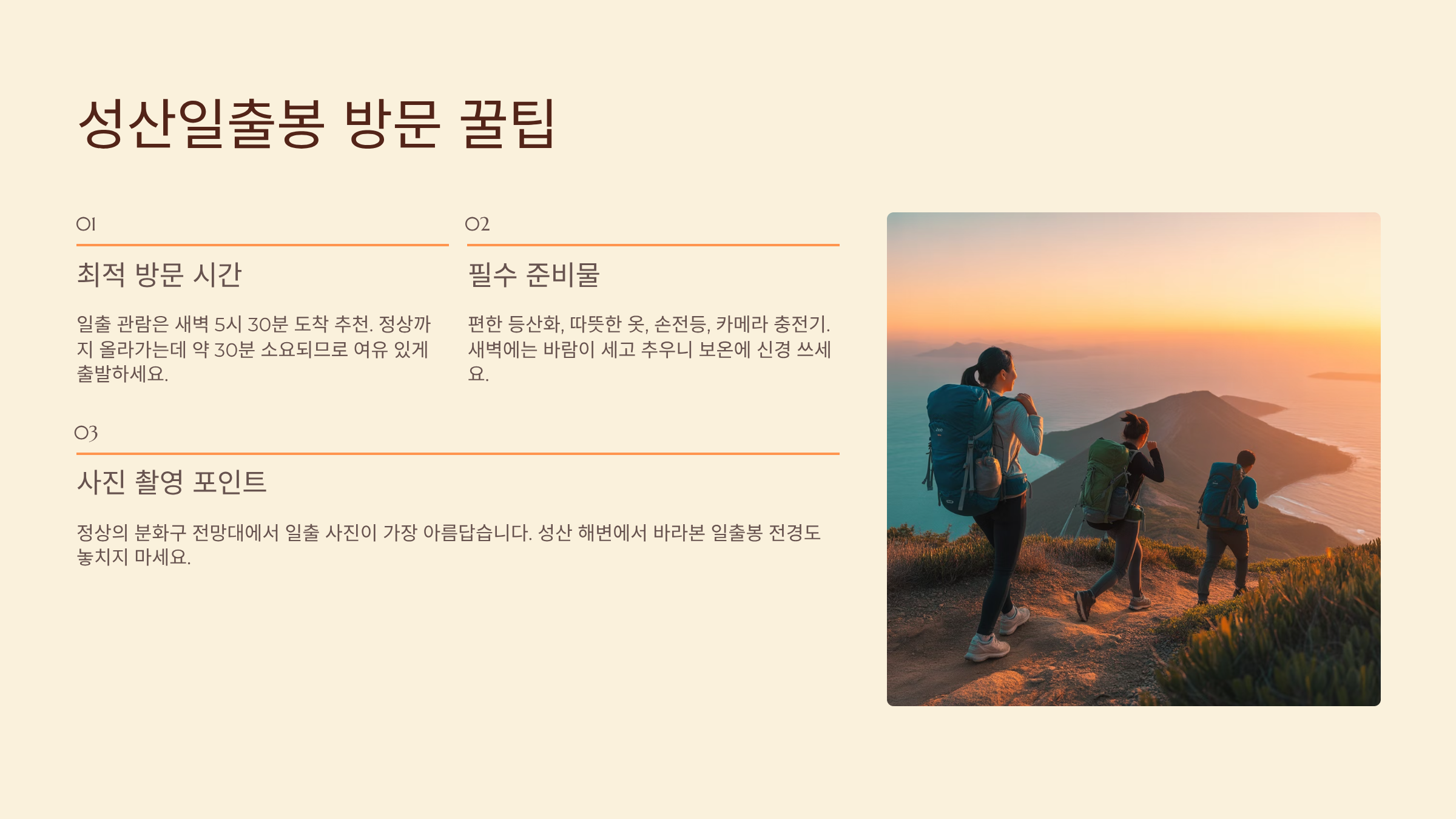 방문 팁 일출 시간 1시간 전 도착, 날씨 확인 필수