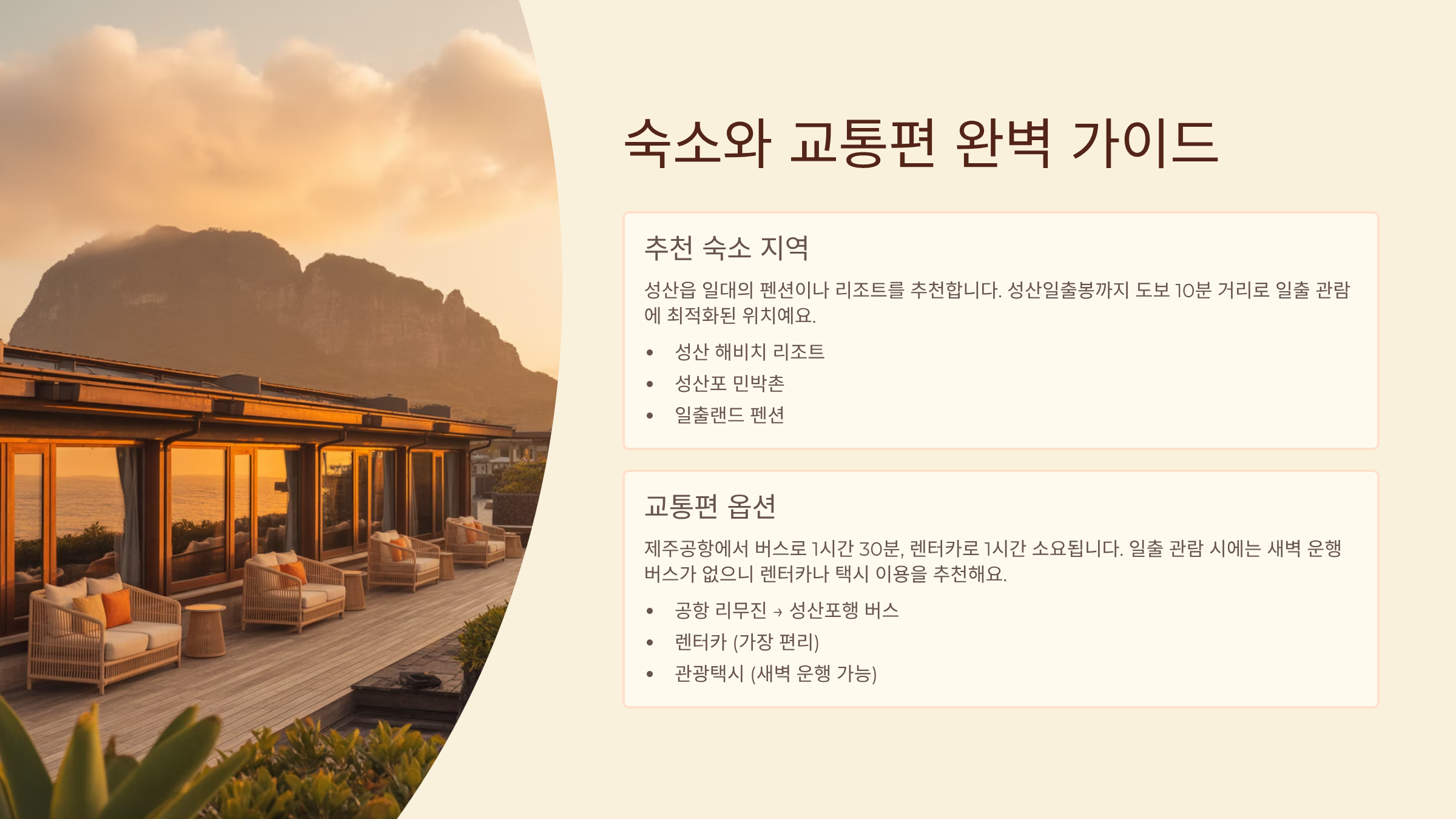 성산일출봉 주변 숙소 및 교통 정보
