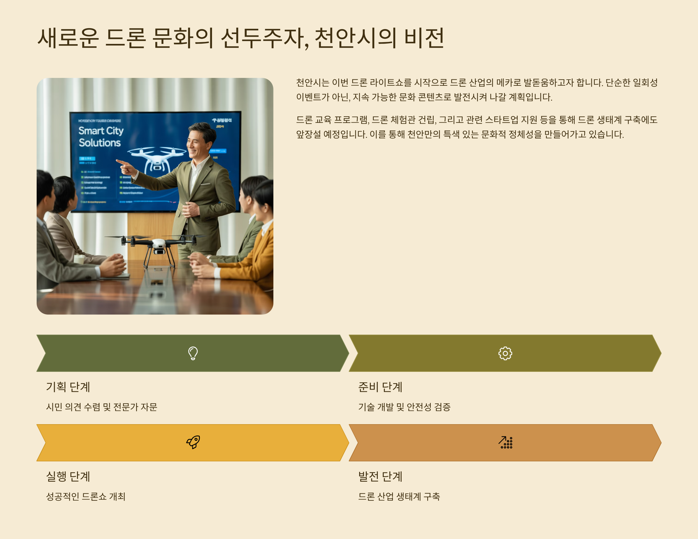천안시 비전 2040 바로가기새로운 드론 문화의 선두주자, 천안시의 비전 🚁