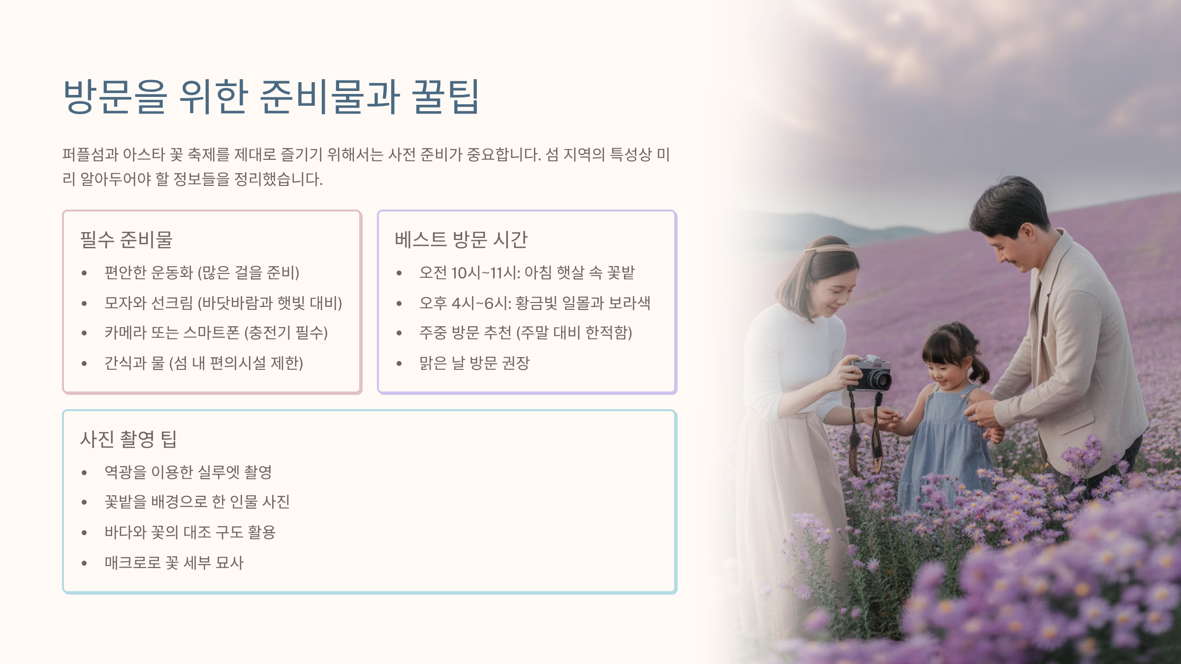 작성자: G.L.Lee | 검수자: K.M.Park | 업데이트: 2025-09-25신안 아스타 꽃 축제: 가을을 보랏빛으로 물들이는 환상적인 퍼플섬의 모든 것