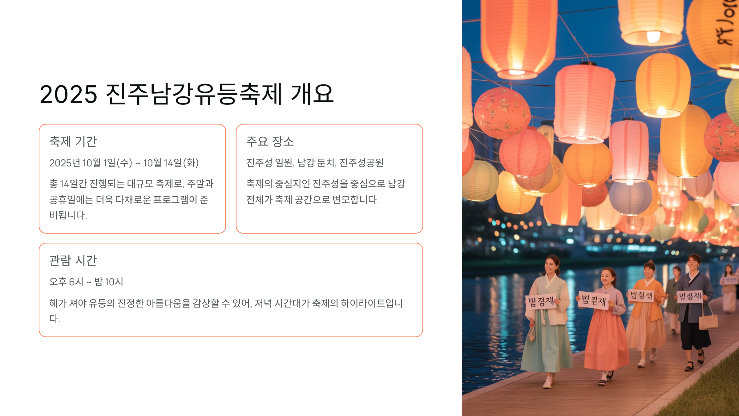 2. 2025 진주남강유등축제 개요 및 상세 일정 🗓️