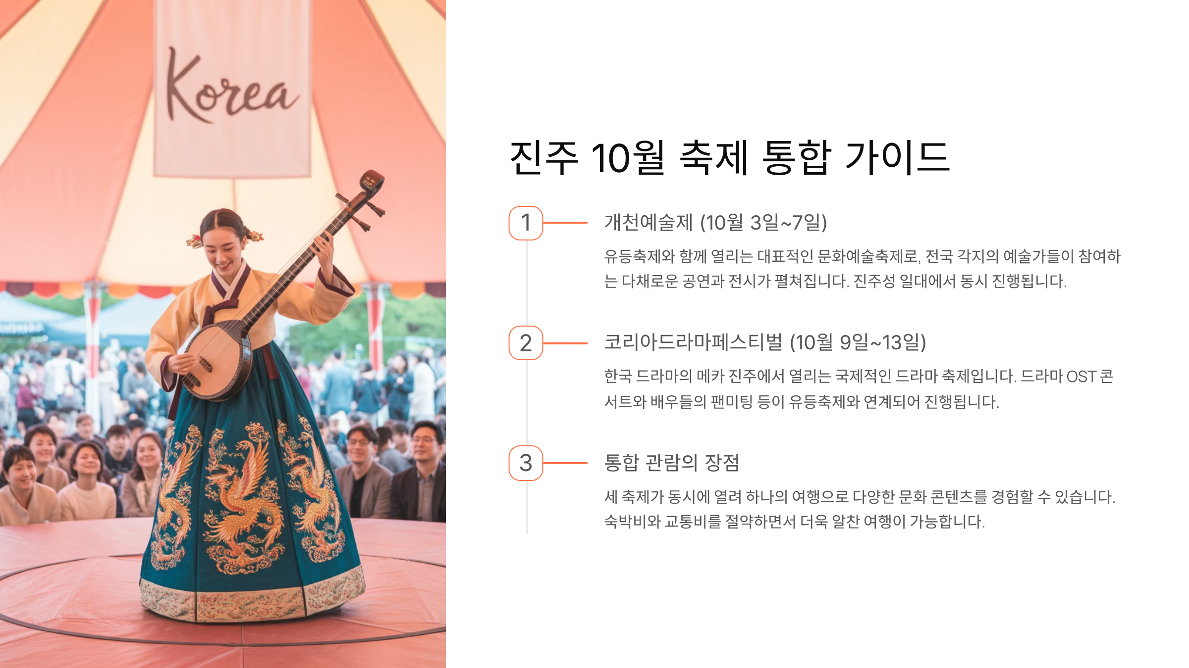 6. 진주 10월 축제 통합 가이드: 개천예술제, 코리아드라마페스티벌 🎭