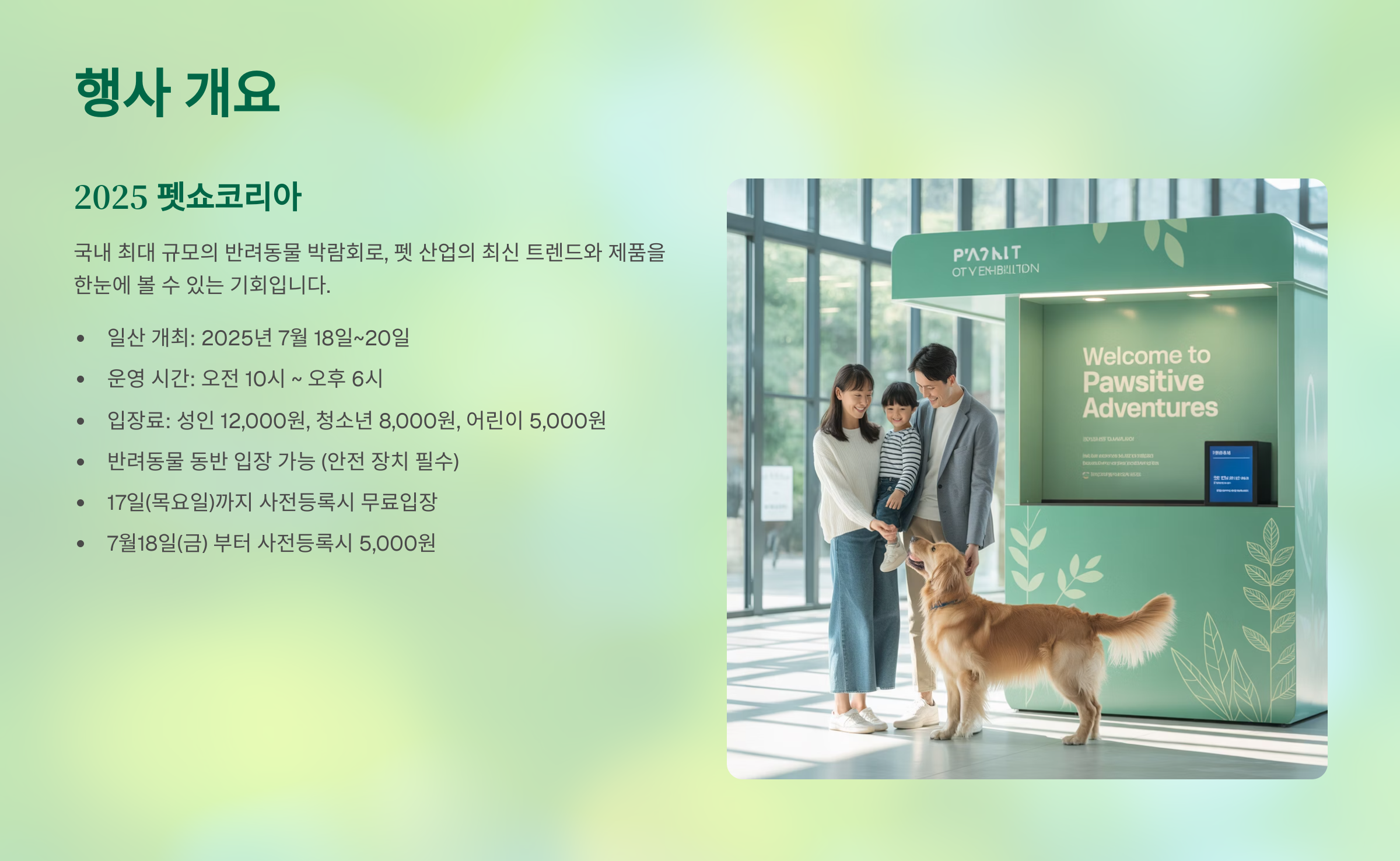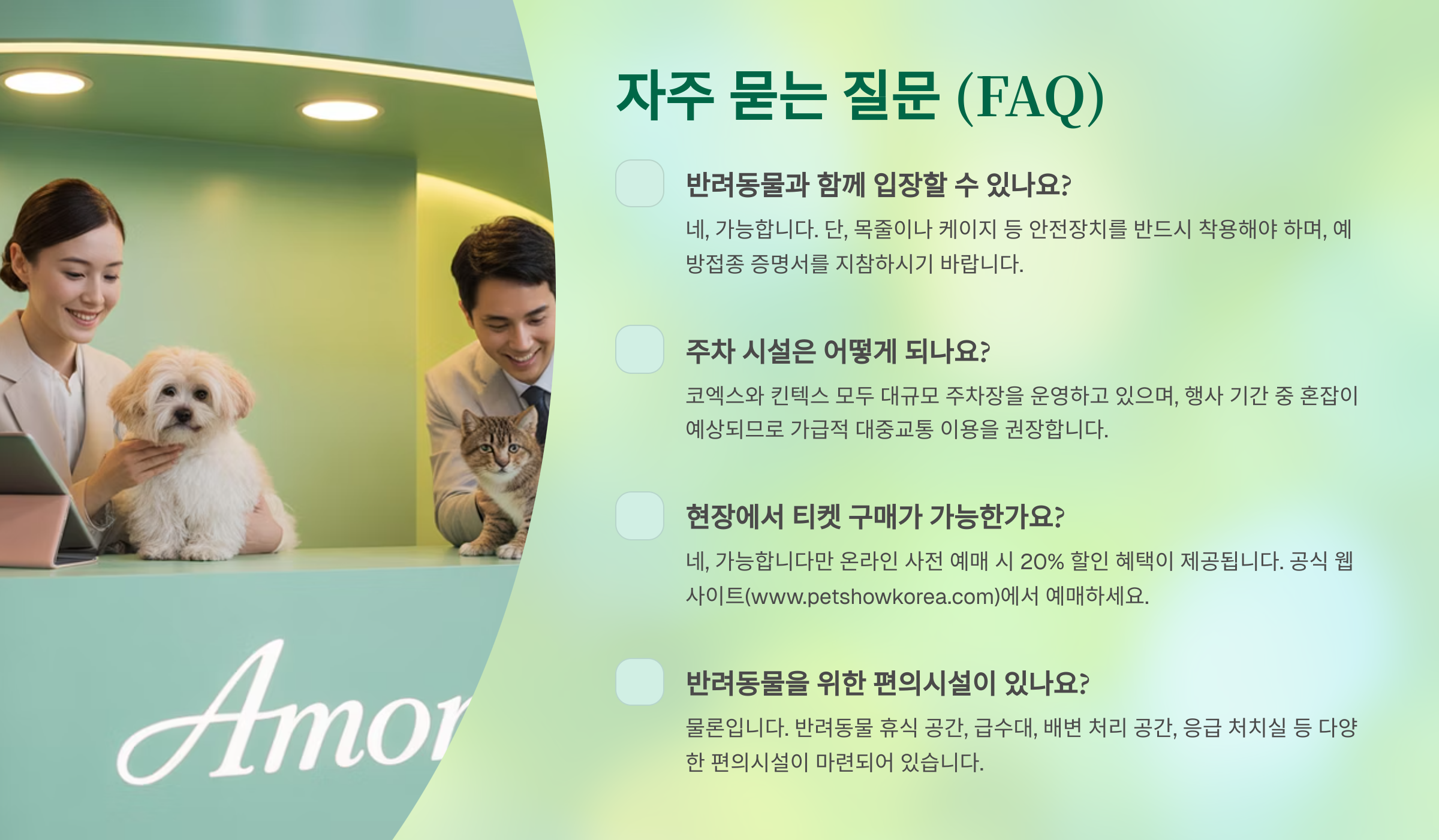 펫쇼코리아는 단순한 박람회를 넘어, 반려동물과의 행복한 동행을 위한 새로운 영감과 실질적인 혜택을 제공합니다.